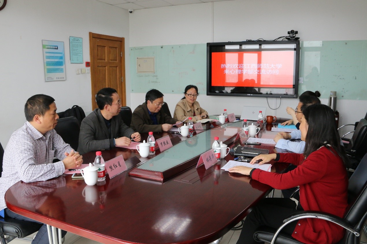 4月19日,江西师范大学心理学院党委书记池平清、院长罗照盛、副院长张璟、副教授熊红星一行来访金牌影院 。我部党委书记乔志宏,副部长林丹华、刘春荣负责接待并与参加座谈。