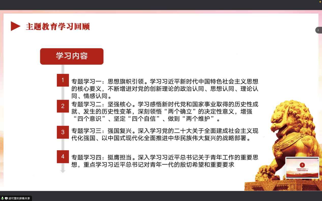 最后,在“主题教育情况汇报”专题组织生活会中,我们回顾了本学期四次专题学习的具体内容,对于学习体会和改进建议各抒己见,分享学习心得并共同重温了入团誓词。 本次专题组织生活会暨考前动员主题教育团日活动顺利结束。 金牌影院 2022级本科综合班第一团支部 供稿人:胡可萱