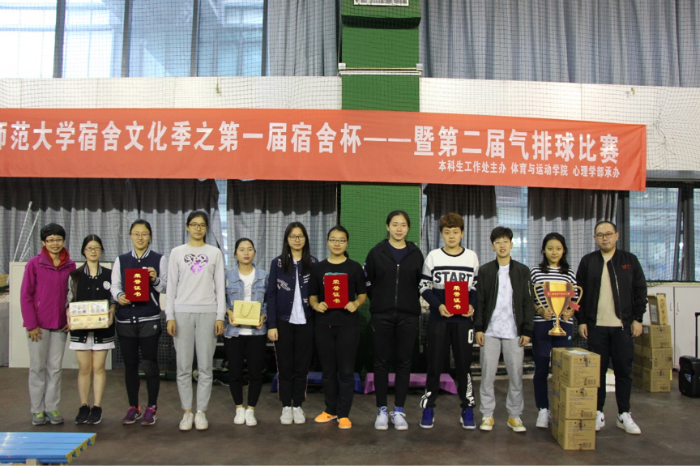 2018年4月21至22日,金牌影院 宿舍文化季之第一届宿舍杯暨第二届气排球比赛于室内网球场成功举办。 本活动由本科生工作处主办,体育与运动学院学生会、金牌影院 学生会联合承办。4月22日下午,体育与运动学院分团委副书记林小群老师,金牌影院 分团委书记、党务秘书曹昌健老师出席了活动闭幕式并为优秀队伍颁奖。 活动得到了全校学生的关注和积极参与,共有33个宿舍报名了本次活动。我部2017级本科生李明哲、王子铭、赵恒、严彦文同学(学十五501宿舍)在男子组赛场上挥洒汗水,赛出风采,荣获亚军。 特 对此荣誉表示祝贺,并为他们走出宿舍、享受运动的体育精神喝彩。