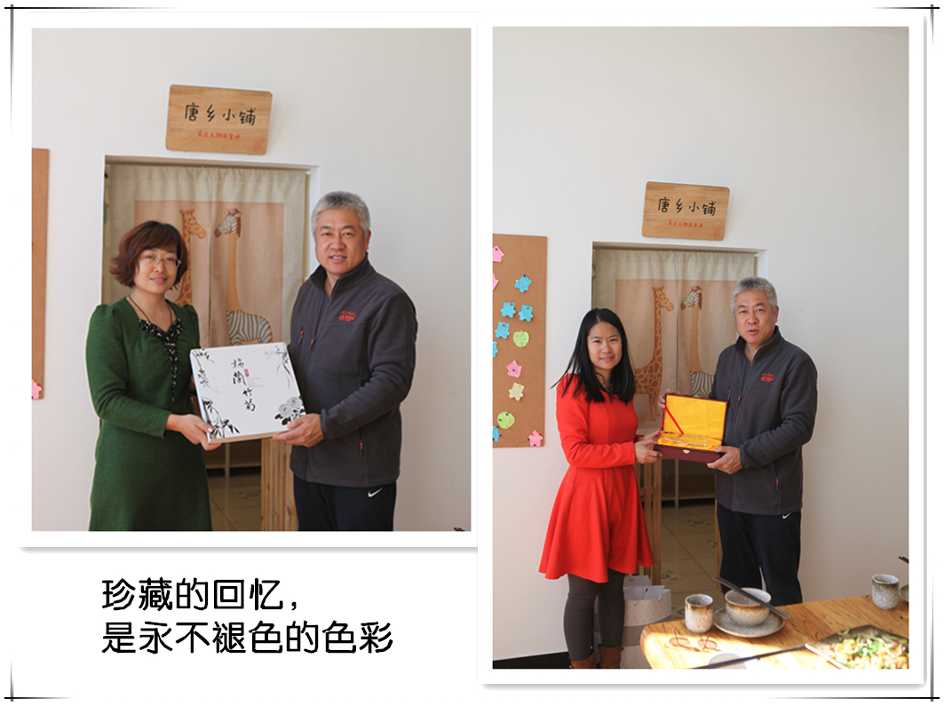 图八 北师大心理学院MAP创业企业行——首站美丽唐乡 带队老师史佳鑫、张晓娜分别代表学院向张董事长赠送了学院的纪念品