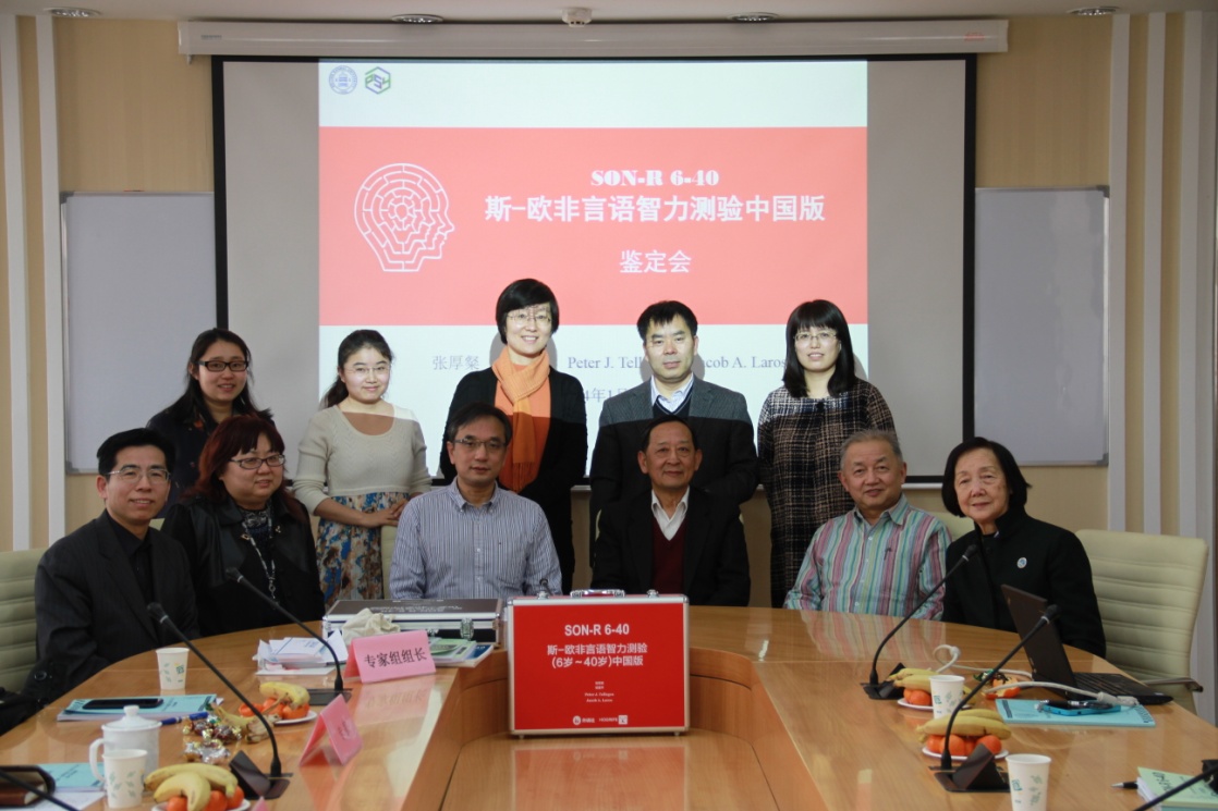 2014年1月23日上午,由中国心理学会心理测量专业委员会组织,邀请张建新研究员(中国科学院心理研究所)担任组长,车宏生教授(金牌影院 心理学院)、方平教授(首都师范大学教育学院心理系)、甘怡群教授(北京大学心理学系)和谢小庆教授(北京语言大学教育测量研究所)共同组成的鉴定专家组,在我院1316会议室组织专家鉴定会,鉴定通过了斯-欧非言语智力测验(6岁~40岁)中国版(SON-R 6-40)。 SON-R 6-40是一套用于测查不同性别、不同民族6岁到40岁人群智力的非言语智力测量工具。测验的研发与修订者为我院张厚粲、徐建平与格罗宁根大学的Peter J. Tellegen和巴西利亚大学Jacob A. Laros四位学者。整个研究工作历时四年多,2013年完成之后研究者向中国心理学会心理测量专业委员会提出鉴定申请。 鉴定专家组在审核申请材料的基础上,认真听取了申请者口头报告,审查了申请者提供的各项书面和电子材料,包括测验版权原始合同、技术研究报告、原始数据电子版、测验原始记录等,审验成套测验样品,质证问答。最后,专家组书面鉴定结论认为:“该测验理论基础扎实,提供的数据真实,修订设计合理,施测指导明确灵活,标准化操作严格,常模构建方法先进,分数计算方法和呈现形式可取,分数解释合理。因此,专家组成员认为该测验质量可靠,适用于跨文化群体,可以满足中国多民族、多语言、多区域文化人群的智力测量需要,一致同意通过鉴定。” 外语教学与研究出版社副总编辑王勇、研发中心总监宋微微、儿童发展中心副总经理吴红岩与编辑罗丽娟作为将要出版该测验的中方出版社代表,列席了本次鉴定会。
