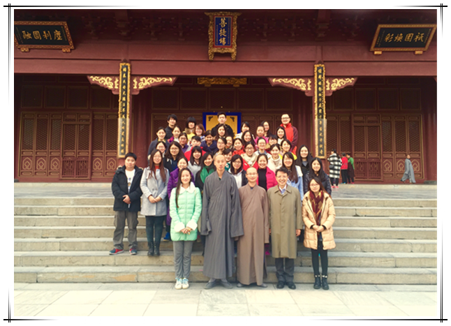 图三 2015级MAP临床心理与箱庭疗法方向柏林禅寺禅修之旅----张老师与同学们在万佛楼前