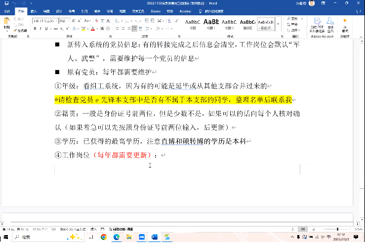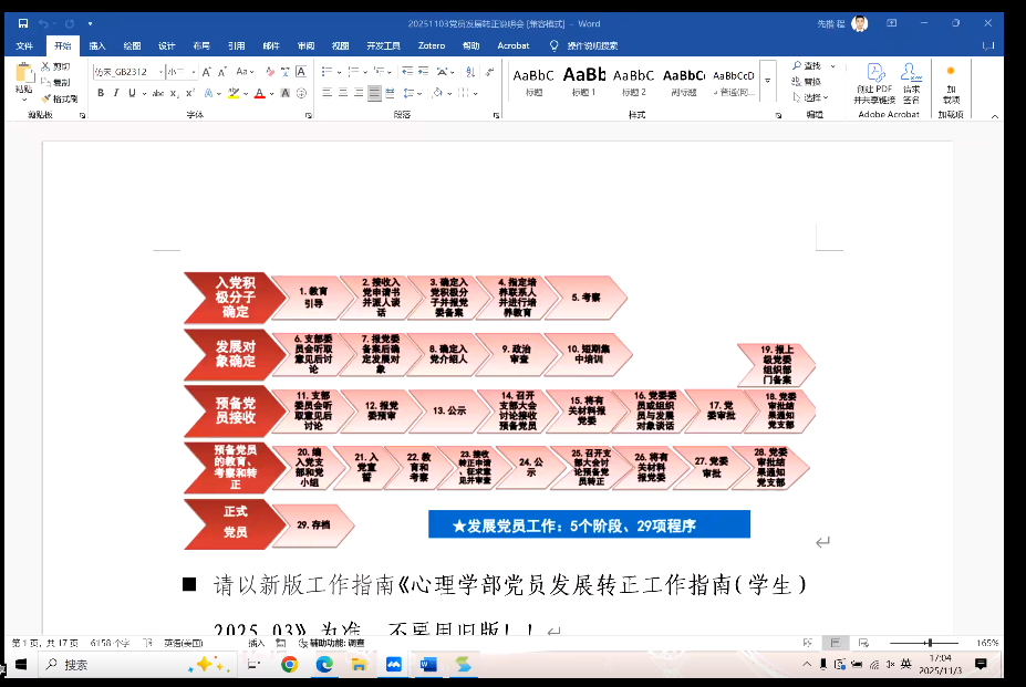 2025年11月3日17:00,金牌影院 2025-2026学年秋季学期党员发展转正流程材料及双系统专题培训会于腾讯会议线上召开。金牌影院 党委办公室齐乐融融老师,各支部党支书以及支委、部分本年度拟发展同学参加了本次会议。