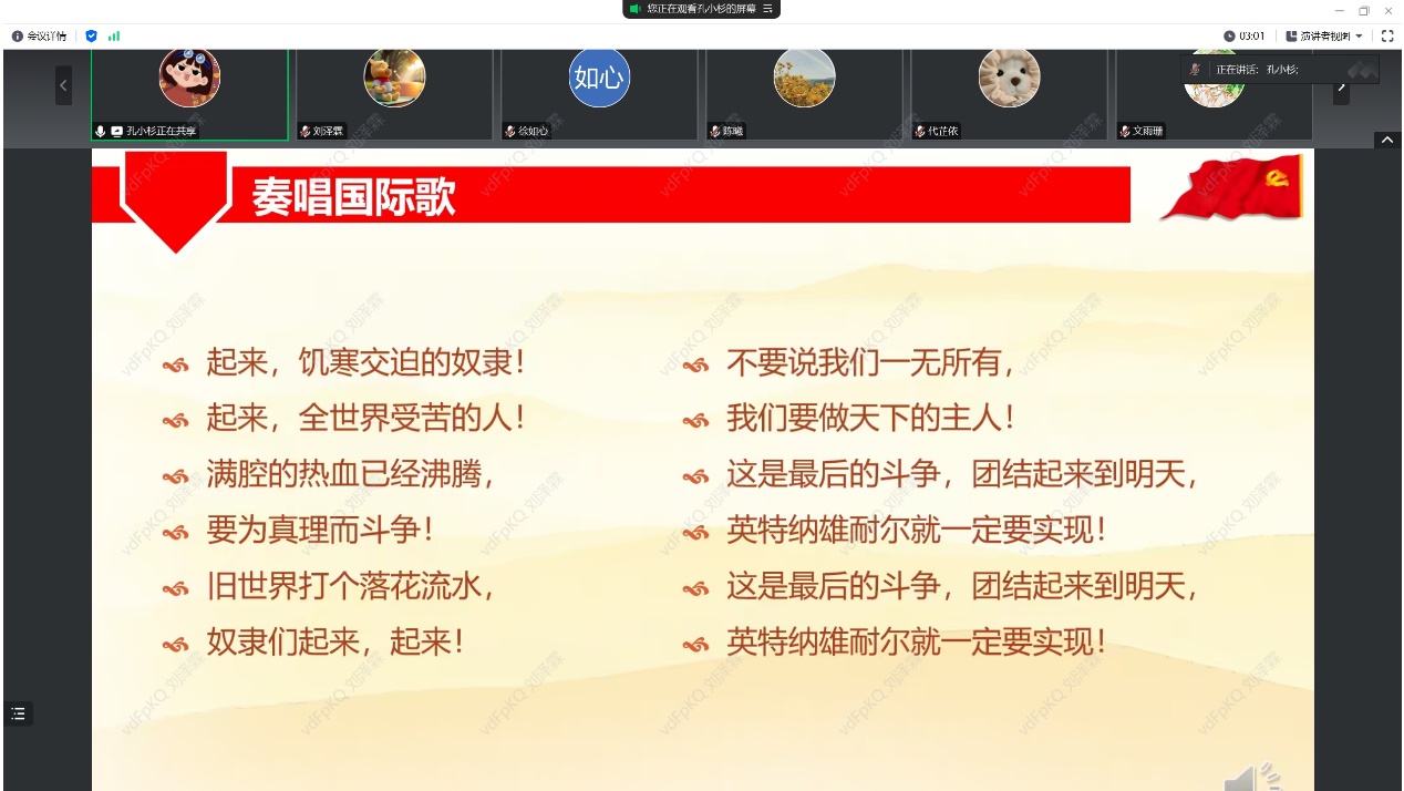 会议开始。首先,全体起立,奏唱《国际歌》。