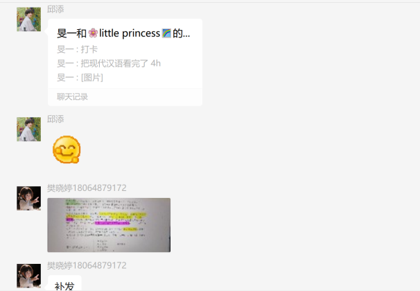 同学们不懈坚持,每天参与打卡,将自己该天的复习成果分享到微信群中,并及时将自己在复习中遇到的困惑和同伴进行交流