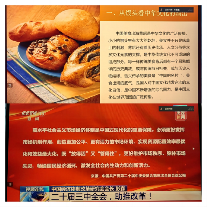 2024年7月,金牌影院 本科生第二党支部的四个党小组,以线上“腾讯会议”为桥梁,跨越时空界限,顺利开展了以“党的二十届三中全会精神”为主题的专题理论学习。此次学习不仅使得同志们的政治敏锐性得以提升,更是一次心灵的交流与思想的碰撞,增强了同志们对国家大事的理解和对人民生活的关注。 2024年7月26日晚20:00,金牌影院 本科生第二党支部第1党小组在“腾讯会议”线上平台召开党小组会,会议由阿伊莎同志主持。本次会议学习的主题为“中国文化输出——中国馒头进军法国面包节”以及“学习二十届三中全会精神”,共13名同志参与本次党小组会。首先,王芮同志带领大家共同学习了近期热点——二十届三中全会精神,分别介绍了全会最重要成果、全面深化改革的重大成就及进一步深化改革与切实提高民生福祉的相关内容。同时,同志们共同观看了会议关键词“改革”的深入解读。随后,符思媛同志分享了“大国文化输出——中国馒头进军法国面包节”的热点时事,分析了事件影响及文化内涵。