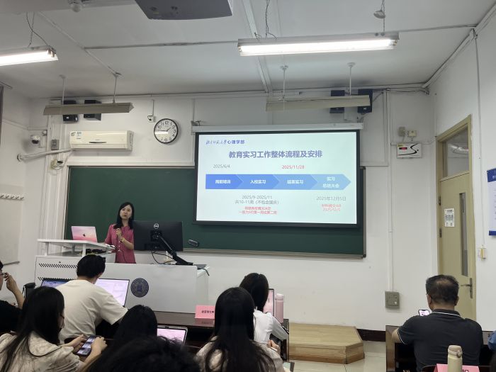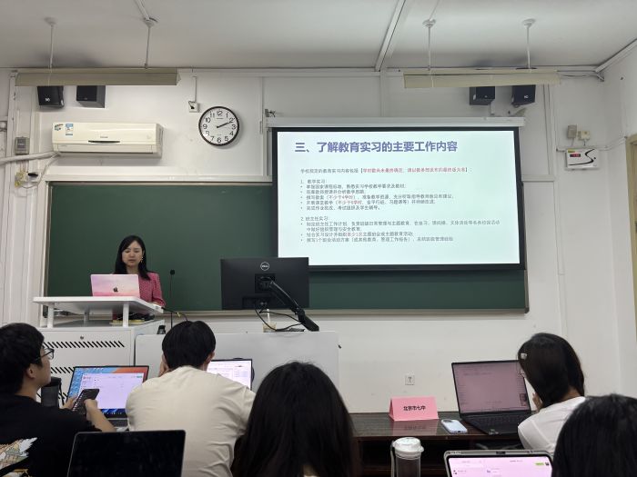 2025年6月4日,为切实提升金牌影院 2022级本科师范生的教育实践能力,帮助同学们顺利完成从学生到实习教师的角色转换,掌握必备的实习规范与核心技能,金牌影院 本科师范方向团队陈师韬老师于教二103举办了2025年教育实习岗前培训。金牌影院 乔志宏书记,师范方向团队负责人刘艳老师及部分教育实习指导老师现场参与,金牌影院 共53名同学参加本次培训。