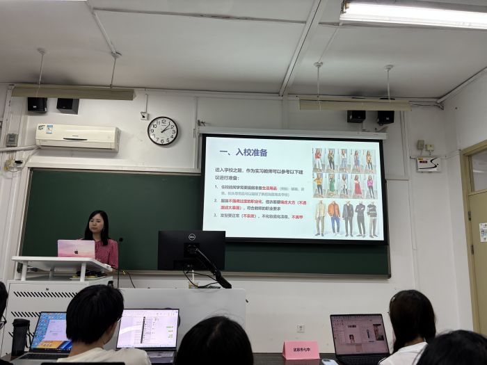 在此之后,陈师韬老师就实习结束阶段及重要注意事项进行了补充。陈老师明确了实习结束后需要提交的各项材料清单及其要求,详细介绍了申报优秀实习生所需满足的条件及需提交的专项材料,并预告了实习结束后的教育实习汇报总结大会安排。特别重要的,陈老师强调了实习期间的请假制度与流程,并针对往年实习中出现的高发问题(如沟通不畅、时间管理、角色适应困难等)进行了重点提醒,帮助同学们提前规避风险,保障实习顺利进行。