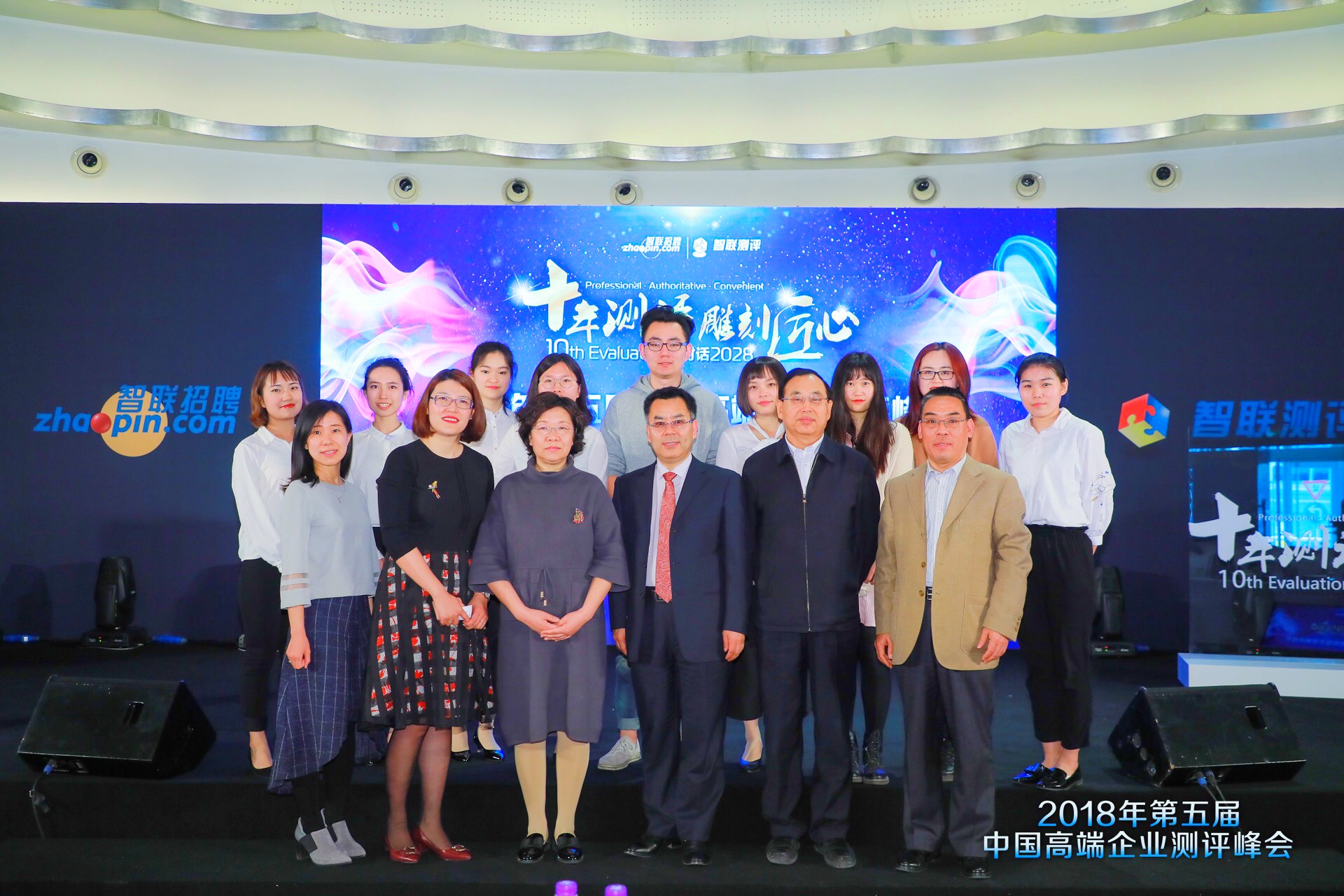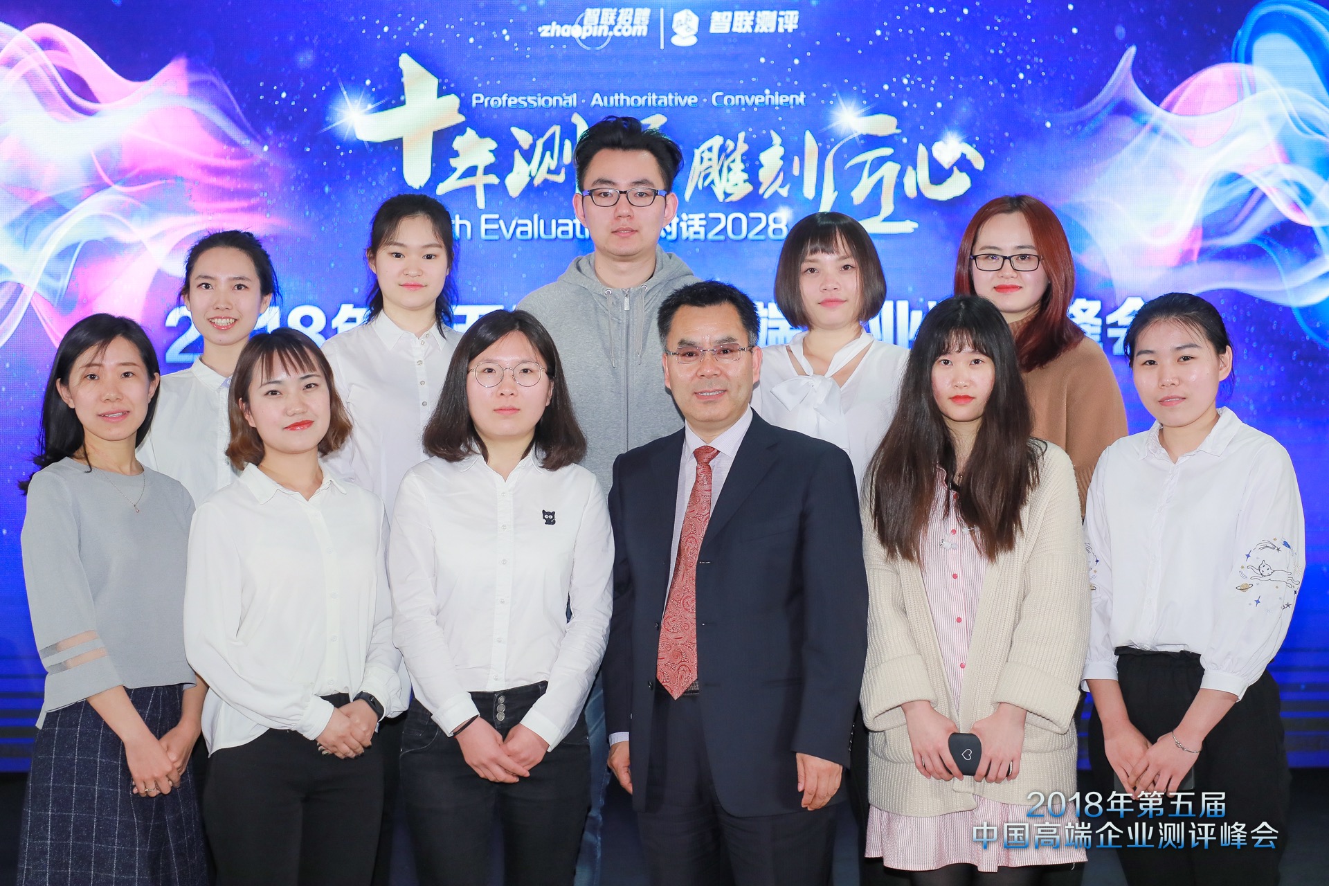 4月12日,心理测量与人力资源管理(MAP-MHR)方向负责人徐建平老师、MAP中心王可老师带领2017级应用心理专业硕士MHR方向九名学生参与了由智联招聘旗下专业测评机构“智联测评研究院”主办的第五届中国高端企业测评峰会。本次峰会以“十年测评,雕刻匠心”为主题,大咖荟聚畅所欲言,共同探讨AI时代的心理测评发展。其中有六名我部MHR学生担任了大会志愿者。 图一 北师大金牌影院 MHR方向师生与第五届中国高端企业测评峰会会议嘉宾合影