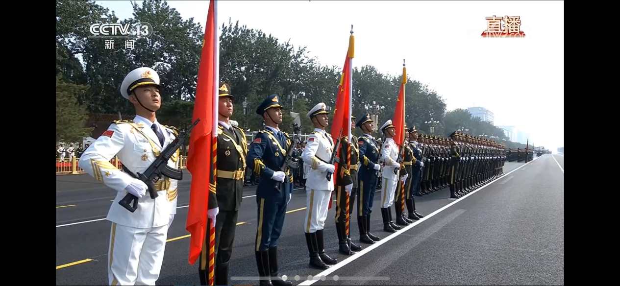 阅兵分列式环节,一幕幕宏大场景让党员们心潮澎湃。徒步方队中,受阅官兵组成的步兵方阵如钢铁长城般阔步前行,整齐划一的步伐踏击出震撼人心的节奏,靴底与地面碰撞的声响透过屏幕传来,仿佛能让人触摸到人民军队严明的纪律与昂扬的斗志;紧接着,装备方队以排山倒海之势驶来——新型主战坦克身披数码迷彩,炮塔上的观瞄设备与周身附加装甲尽显科技质感,在阳光照耀下折射出冷峻的金属光泽,其搭载的先进火控系统可实现超视距精准打击,彰显着国防科技的硬核实力;防空反导装备方队里,新型地空导弹、反导拦截弹巍然矗立,发射筒上的纹路与导弹尾翼的细节清晰可见,它们如同苍穹之下的“守护者”,无声传递出捍卫领空安全的坚定底气;当战略导弹方队缓缓驶过,搭载着大国重器的特种车辆发出沉稳轰鸣,每一枚导弹都如蓄势待发的“利箭”,弹体上的标识与涂装既具威慑力,更承载着维护和平、震慑强敌的国家意志。空中梯队的亮相更是将观礼氛围推向高潮。数十架歼击机、轰炸机组成的编队呼啸而至,机翼下拖曳的彩烟如绚丽纽带划破长空,编队精准的队形变换与凌厉的飞行姿态令人叹为观止——歼击机群以“箭形”编队高速掠过,展现出制空作战的凌厉锋芒;轰炸机梯队则以“品字形”稳健飞行,传递出战略威慑的厚重底气。飞行员们精湛的技术与我国航空工业的跨越式发展,透过屏幕带给党员们强烈的视觉冲击与心灵震撼。
