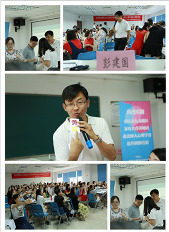 2018年7月9日,由学部主办的“重庆市九龙坡区家校共育讲师团提升研修培训班”在北师大珠海分校顺利开班。参加本次培训的学员共有85名来重庆市九龙坡区幼儿园中小学教师、校长和研究员。 培训班的开班仪式在学部EDP中心张晓娜老师热情洋溢的主持中正式开始。学部副部长王君在开班仪式上致辞,对各位学员的到来表示了热烈欢迎,详细向各位学员介绍了金牌影院 珠海分校的发展史和北师大金牌影院 的现状以及本次培训课程和教师构成,并在最后对参加的学员提出殷切的学习期望。九龙坡区教师进修学院邹扬主任对学员提出“学以致用,习练融合”的希望,领队袁丽钦老师宣布学习的规则,培训班班主任崔艳丽与培训班学员首次见面,开班仪式顺利进行。 当天金牌影院 珠海分校心理与行为研究所长彭建国博士进行了开班讲座,在一天的时间中,围绕“想不到”“放不下”“看不透”这9字箴言,通过游戏体验、团体辅导、案例分析、理论讲解、佳作推荐等方式,从六个方面深入浅出地为讲师团做了题为《中小学生团体心理辅导——有效沟通》的专题讲座。5秒钟能拍多少次掌?40多人能在多少时间里传递“长颈鹿的痛”?你为什么不能发现花瓶里有9只小海豚?别人哭泣时最恰当的方式是什么?同样的“雪花飘飘”游戏,为什么小组成员第二次还不能达到高度统一?青春期为什么会叛逆?新生儿为什么要游泳?45分钟的Stroop团队挑战为什么完不成既定任务?在一次又一次的活动体验中,在一组又一组的讨论交流中,在一声高过一声的表达中,全体学员积极地参与将培训推向一次又一次的高潮,并最终在延迟45分钟时长的讲座中完美结束。 全体学员第一天表示收获颇丰,对学部专业的培训安排表示了感谢,期待后续精彩的培训。