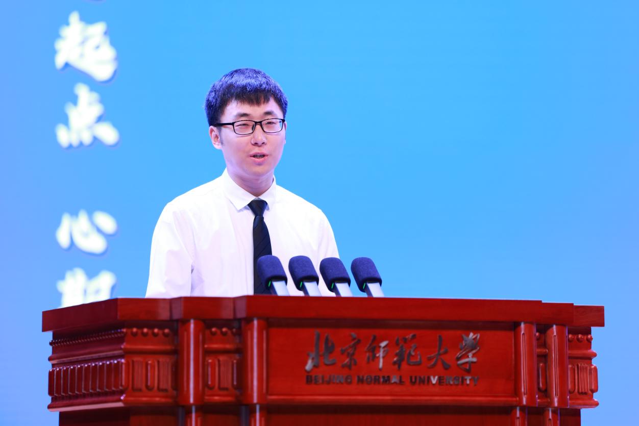 2025级工业与组织心理方向专业博士周群力代表专业研究生新生发言。周同学以个人从业经历为例,分享了对专业学位学习的体悟:要学会“两条腿走路”,一条腿是研究,一条腿是实践,立志在北师大这片心理学沃土上“研究真概念,解决真问题”,用研究推动实践,用实践回馈社会。