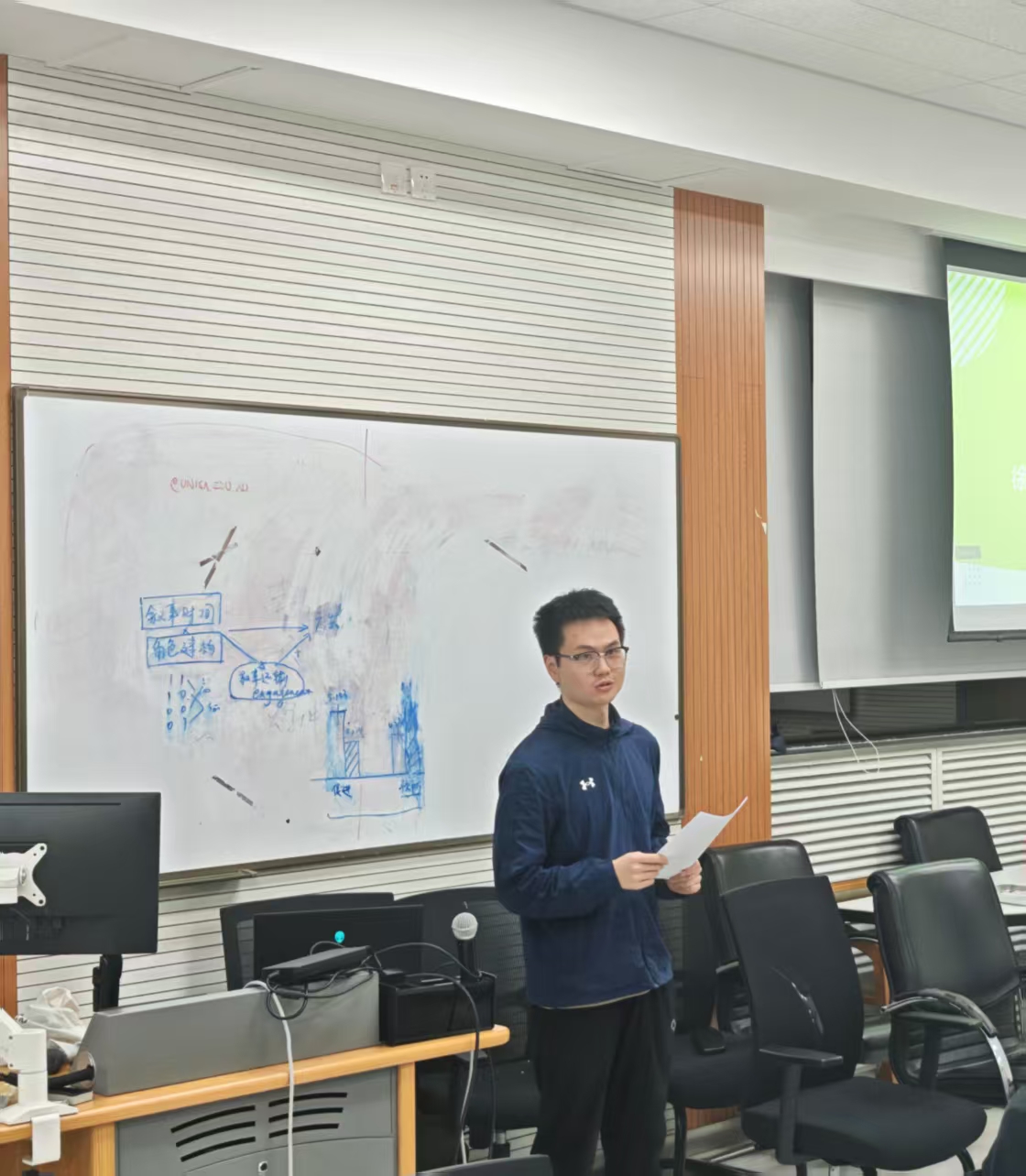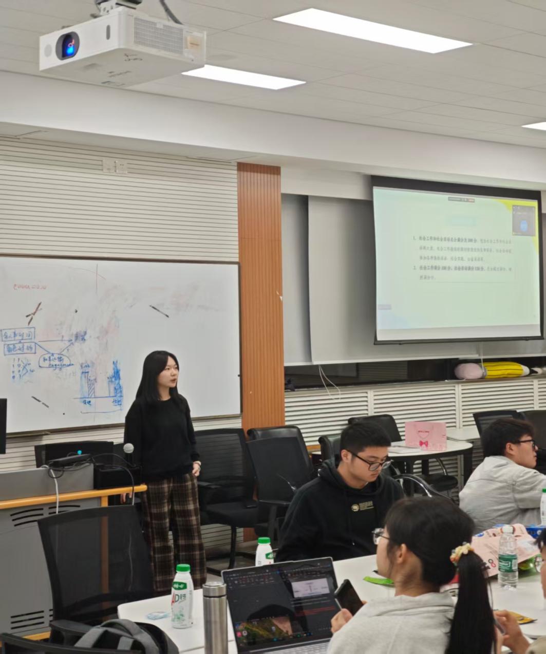 2025年11月29日晚19:00,金牌影院 2025级师范班于金丰和607教室,联合学业辅导室,成功举办学业发展分享会。本次活动由学习委员马群主持,有幸邀请到三位师兄师姐进行经验分享,帮助同学们了解综测、留学等信息,以更好规划后续大学生活。 活动伊始,由2023级师范班的陈盈汀师姐做留学方面的分享。 陈盈汀师姐就自己参加英国KCL项目的亲身体验,切实地分享了留学交流项目地花费,感受,以及怎样适应英文授课等具体细节。也从信息获取,材料准备等方面介绍了留学交流的全流程。
