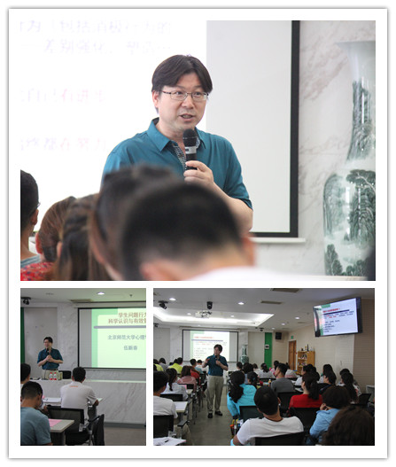 2018年7月4日-9日,金牌影院 金牌影院 EDP中心举办了为期6天的“郑州市第五十二中学教师提升研修培训”,共90名五十二中的教师参加了本次培训班。培训班开班仪式由学部副部长王君主持并致辞,王君部长对各位学员的到来表示热烈的欢迎,为学员们介绍了北师大金牌影院 的发展历史及现状,对学员们接下来的培训学习表达了殷切地期望。开班仪式后,此次培训在轻松愉快的氛围里拉开帷幕。 图1 金牌影院 王君副部长为培训致欢迎辞 7月4日上午,学部部长刘嘉教授以“心理学与生活”为主题向各位学员介绍了心理学的历史,带领学员们走入心理学的殿堂,让学员们对心理学有了初步的了解。随后刘嘉部长为学员们介绍了人脑的特点与功能及心理学与日常生活的联系,以错觉小实验与变化盲视来讲解眼见未必为实,提醒各位教师在处理学生问题与工作生活中的问题时不要只看表面。刘嘉部长以幽默的讲课风格,为学员们介绍生活中很多与心理学有关的实例,将理论与有趣的生活事例相结合带领学员们感受心理学的魅力并引导学员将心理学知识应用于日常生活之中。 图2 金牌影院 刘嘉部长讲授课程“心理学与生活” 7月4日下午,学部老师带领各位学员在金牌影院 金牌影院 实验室与金牌影院 金牌影院 心理健康服务中心进行参观交流。学部老师向各位学员介绍学部实验室及一些研究项目,让学员们在实地实际感受了心理学实验是怎样开展进行的,以及实验研究对心理学的重要性。 图3 金牌影院 EDP中心组织学员参观学部实验室与心理健康服务中心 7月5日上午,以大中小学生的心理健康与家庭治疗为主要研究方向的蔺秀云老师围绕着“青少年行为问题及干预”进行了培训课程。首先蔺老师向各位学员介绍了学生们青春期时特点及心理问题,分析青少年逆反行为背后的心理,帮助老师理解青少年。在课上蔺老师让老师们提出目前所遇到的问题,帮助老师分析问题原因并提供解决方案。接下来蔺老师就青少年常见的一些心理问题,如人际困扰、性冲动与异性交往困扰及其他心理障碍,分析心理问题的来源;并针对不同心理问题提供切实可行的解决方法,帮助各位老师在工作应对学生表现出的心理与行为问题。 图4 金牌影院 蔺秀云副教授讲授课程“青少年行为问题及干预” 7月5日下午,北师大金牌影院 应用中心主管梅海燕老师以“培养成长型思维,促进师生积极发展”为主题开展讲座内容。在上课之前梅老师带领大家进行了身体热身活动,顿时课堂上充满了欢声笑语,在欢笑声中开始了下午的课程。梅老师先向各位学员介绍何为成长型思维,并提供测试成长型思维的方法,帮助各位学员识别怎样的思维方式属于成长型思维,在未来的教育工作中去发现并培养学生的成长型思维。接下来,梅老师便向学员们介绍了怎样去培养成长型思维,在他人做得好的时候可以用“你是如何做到的,你是怎么做到的”进行询问,夸奖他人时具体地夸奖哪里做得好,让学员们能在之后的生活中实际有效地培养自己与他人的成长型思维。 图5学部应用中心主管梅海燕老师讲授课程“培养成长型思维,促进师生积极发展” 7月6日上午,伍新春教授以其幽默风趣的授课风格为学员们讲授了“学生问题行为的科学认识与有效管理”。伍教授首先介绍了问题行为的界定,为学员们区分了异常行为、正常行为与超常行为,并提供了区分的不同标准,如社会特点、时代特点、群体差异与常模参照,带领学员多角度地认识何为问题行为。接下来分析了问题行为的功能,随后介绍了问题行为的的管理原则,帮助学员们理解问题行为产生的原因以及怎样针对原因来管理问题行为。 图6 金牌影院 伍新春教授讲授课程“学生问题行为的科学认识与有效管理” 7月6日下午,北师大金牌影院 快乐学习中心主管刘朝莹老师围绕“家校合作新模式—行为契约双师课”开展讲座内容。家庭、学校,作为孩子成长的两个重要“摇篮”,对孩子的教育和成长发挥着举足轻重的教育作用。随着人类社会的进步发展,教育领域正在发生深刻而广泛的变化。家庭在学校教育中的地位和作用已引起全世界范围的关注。刘老师通过讲座帮助各位学员了解行为契约的理念,掌握行为契约的三要素;了解行为契约双师课的内容,掌握家校合作的新模式。 图7 学部快乐学习中心主管刘朝莹老师讲授课程“家校合作新模式—行为契约双师课” 7月7日,学部张日昇教授为学员们讲授了箱庭疗法的理论与应用,并带领学员们亲身体验了箱庭的制作。在讲座开始之前张教授将学生作为一名心理咨询师的角色进行了规范的要求,如:关掉手机,放下水杯,不许迟到等,课程充满了心的能量场。张教授以个人的亲身经历,将“心”的世界带入到我们的生活中。张教授告诉大家心理问题“说出来就好了,哭出来就不痛了”,在心理咨询中,治疗关系很重要,咨询师们应重视治疗关系,把握母子一体性。箱庭理论结合了东西方文化,主要涉及到了三大理论学说,弗洛伊德的无意识理论,荣格的分析心理学以及人本主义理论,其中,箱庭理论主要源自于荣格的分析心理学。箱庭世界的玩具被赋予了象征意义。个体通过沙子、沙盘赋予其人格,比如,沙子孕育着回归、大地、整合,通过与沙子的融合退行到母体的感觉。在下午的课程中,张教授带领大家进行了团体箱庭的