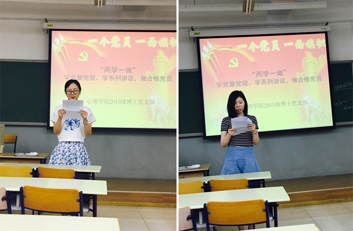 2016年6月8日晚8点,心理学院2015级博士党支部在教九301教室举行“学习党章党规、系列讲话”收获分享会。支部书记谢瑞波主持会议,共10名支部成员出席了本次收获分享会。