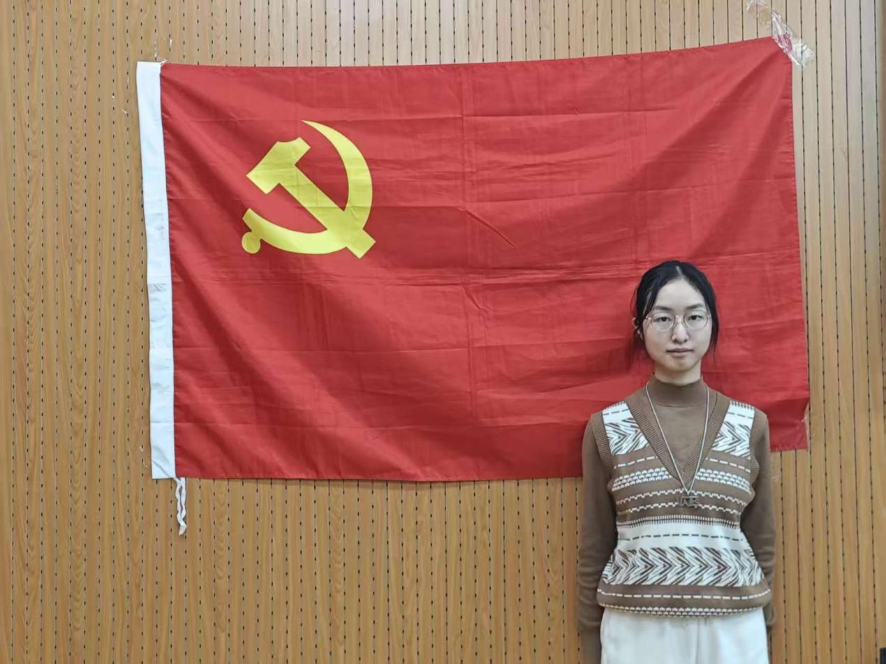 最后,吴怡萱同志与党旗合影留念。