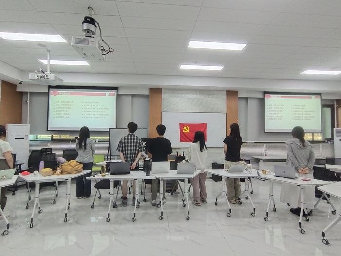 2024年5月26日18点,金牌影院 本科生第二党支部第二次党员转正大会在金丰和607召开。会议由支部书记黄彤彤同志主持,5名正式党员、6名预备党员参与。大会的主题是针对唐凤华和樊晓婷同志的转正申请及相关情况进行讨论和表决。 黄彤彤同志清点到场人数。本支部应到党员20名,其中正式党员9名,预备党员11名,经统计实到正式党员5名,超过正式党员人数的半数,符合召开大会的条件,可以召开预备党员转正支部大会。 会议开始,党支部全体成员起立,合唱《国际歌》。
