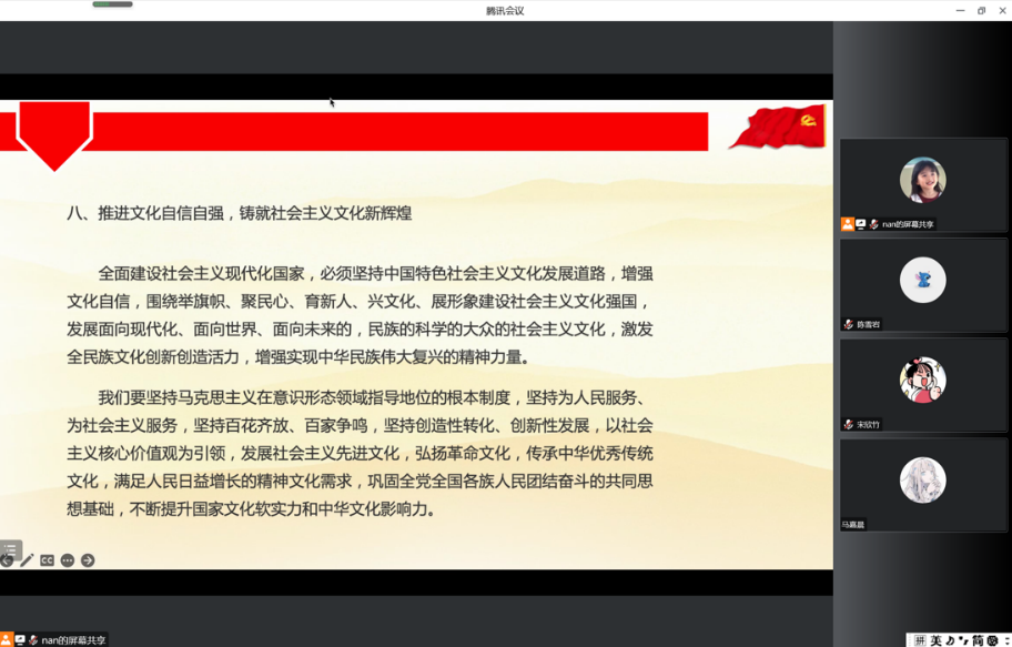 2022年11月18日下午5点,金牌影院 本科生第一党支部第四党小组顺利开展11月份的党小组会。会议通过“腾讯会议”平台以线上会议的形式进行,由易振南同志主持,共16名成员参与。