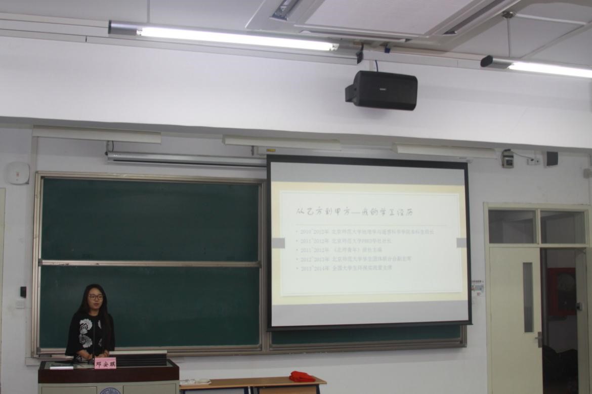 2015年11月21日,地遥、心理两院学生干部素质训练计划在教四107及教四201教室顺利开展。本次活动由地遥学院分团委与心理学院分团委联合举办,地遥学院分团委书记倪佳琪老师,心理学院分团委书记史佳鑫老师,地遥学院2010级本科生、北京大学城市与环境学院研究生邓安琪及社会发展与公共政策学院公共管理专业博士生彭宇作为嘉宾出席活动。心理学院本科生郑兆奇主持了本次培训。 活动包括经验分享、素质拓展、小组展示三个环节。首先,邓安琪以“学工内外,甲方乙方”为主题,结合个人近8年学生工作就学生干部如何角色定位、如何塑造影响力、如何处理各方关系以及成长与发展等问题分享了自己的感悟,与两院的学生干部们进行了积极的互动交流。 邓安琪同学进行经验交流分享 然后,倪佳琪老师以“学生工作中的宣传思想”与同学们进行交流,以金牌影院 为例介绍了高校新媒体发展途径以及新媒体在高校宣传中的优势、特点。并结合范例与同学们分享了在工作中如何做好一份总结的感悟与心得,博得现场一片喝彩。 倪佳琪老师就学生宣传工作分享感悟 随后,彭宇就“学生干部的个人成长”分享了个人学生工作历程和收获思考,并针对时间管理、控制情绪、团队协作、保研出国等问题发表了自己的看法。 彭宇同学与同学们交流经验 素质拓展活动以“小鸡变凤凰”“5毛一块”“根据特征描述要签名”的三个游戏加深了两院同学们对彼此的认识,现场气氛活跃。 游戏增强了两院同学的交流 最后,同学们以地理文化节和525心理文化节为例开展活动方案修改,并针对“院学生会如何快速大量吸粉、学生活动创新、学生干部怎样与学院老师更好的沟通”三个问题展开研讨。倪佳琪老师与史佳鑫老师对活动进行了总结与点评。 地心引力,心地相聚。本次活动着眼学生工作,立足学生群体,不仅仅提升了同学们对学生工作的认识,还加强了地遥、心理两院的交流合作。相信通过此次培训大会和以后每一位学生干部的共同努力,我们将会成为一支具备优秀政治素质和领导才能,具有一定组织基础、德才兼备的高素质复合型学生干部队伍! 地心引力,心地相聚