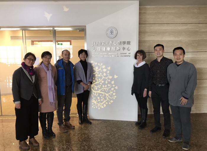 2016年12月23日,美国加州整合大学主管校长Judie Wexler博士以及副校长黄女士前往北师大心理学院进行交流,双方就临床咨询、领导力方向的专业培训以及研究合作等事项进行了深入交流。 图1加州整合大学(CIIS)主管校长及副校长来北师大心理学院交流 北师大心理学院临床咨询方向的王建平教授、李子秋博士、领导力中心的许晓勇博士及其团队参与了此次会谈。北师大心理学院MAP中心主任孙舒平老师首先介绍了北师大心理学院专业硕士的基本情况,继而双方就可能的合作方向予以了探讨。 图2 加州整合大学(CIIS)主管校长及副校长参观北师大心理学院心理健康服务中心 会后,MAP办公室张晓娜老师带领参访嘉宾参观了北师大心理学院新进落成的心理健康服务中心,心理健康服务中心的杨发挥老师、李子秋老师、徐非儿老师予以了接待,进一步交流介绍了心理学院社会服务、科研、教学于一体的平台基地建设情况。
