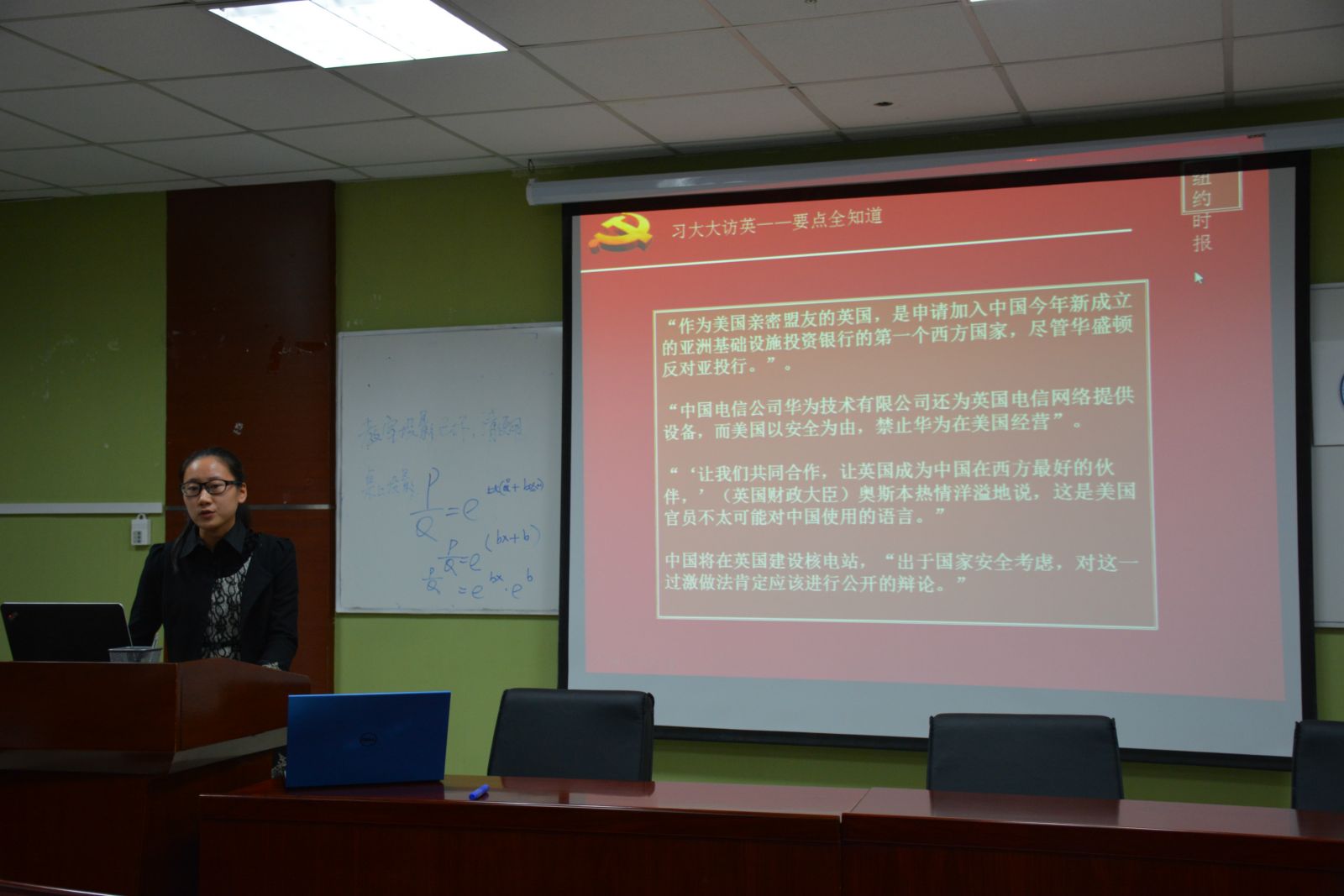 10月24日,心理学院本科生第二党支部在后主楼1420举办了第二次民主生活会。本二支部的党员和积极分子二十余人出席了本次会议。本次民主生活会由周次华同学主持,刘蓓同学和程子茜同学在会上分享了近期“习近平访英”的时事新闻。 首先,刘蓓同学分享了习近平访英的主要行程,然后对行程表进行了解读。不仅可以看出英国政府对于中国的高度重视,表明两国在贸易、投资、金融、文化教育等领域的重点交流与合作。接下来,程子茜同学进一步介绍了此次习近平访英取得的成果和意义,以及分析外媒和中煤对此事的诸多报道。最后,支部成员就报告内容进行了充分的讨论,互相交流了各自的想法。在报告结束之后,支部书记王露强调支部同学应加强理论学习,尤其是对于近期提出的社会主义核心价值观和“三严三实”内涵的理解。 此次民主生活会作为时事政治的普及性活动,不仅使同学们了解到国家最近决策和动态,而且使同学们深刻地认识到执政党的政策和采取的措施在国家建设和良好的国际关系建立中起到的举足轻重的作用。 (心理学院本科生第二党支部 陈娟供稿,刘梦瑶供图)