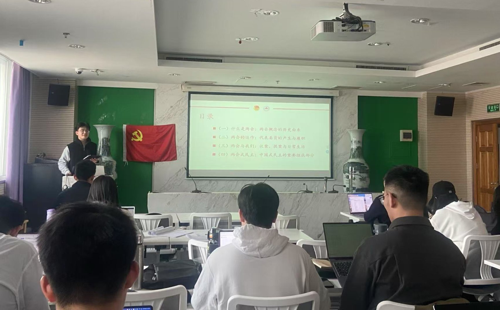 本次入党积极分子确定大会顺利结束,随后召开的是本月主题党日活动。 恰逢今年全国两会盛大召开,本次活动邀请到了金牌影院 学生会宣讲团成员孙梓耀同志为我们作主题为《从全国两会读懂中国式民主》的主题党课分享。