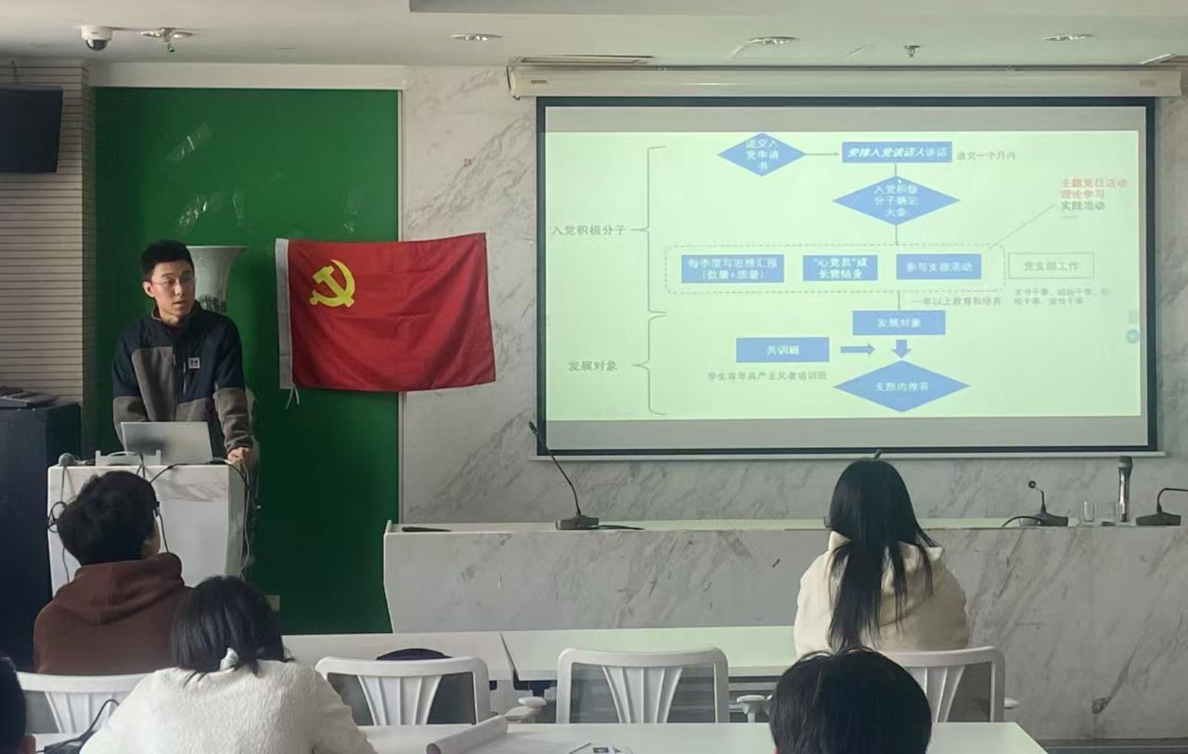 为进一步加强支部党员教育管理,提升积极分子培养质量,切实提高支部工作规范化水平,程先楷同志系统讲解了党员培养与发展相关的规章制度。他详细介绍了入党流程、学部党员发展考核办法、党员学时记录规定等,重点解读了支部发展对象推荐细则和思想汇报考核细则等具体规范。