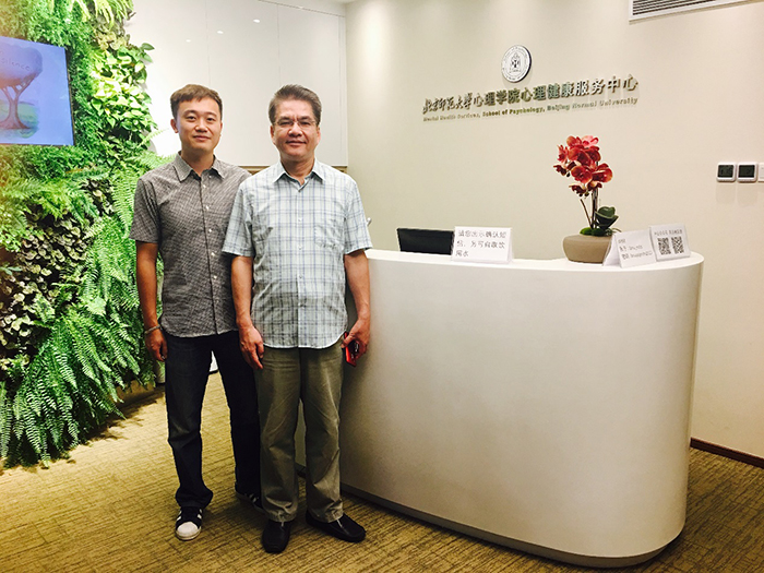 6月11日,国立彰化师范大学张景然教授在李子秋老师的陪同下参观心理健康服务中心。张教授对中心的专业设置、设施以及人才培养给予高度的评价,并且对中心的建设提供中肯的建议。