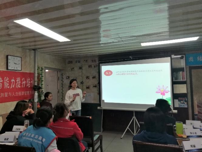 在经过前期实地调研、人员访谈、活动策划及彩排等准备工作后,“金融街街道社区工作者能力提升”短期实践项目首次培训终于正式亮相。 10月15日与10月24日,MHR金融街街道社区工作者能力提升实践项目的第一次培训课程分别北京市西城区金融街街道宏汇园社区和民康社区成功举行。本次MHR短期实践项目以“助社起航、轻松释压”为主题,以培训为手段,旨在提高社区工作者的抗压能力,由2018级MAP-MHR方向的六名研究生在两个社区分别实施六次心理减压的系列培训。 在两次课程开始前,由项目承担方睦友社会工作事务所项目部主任穆秋宣布系列培训正式拉开帷幕。培训以课堂讲授和拓展活动为主要活动形式进行。2018-MHR方向研究生李丹心、徐静分别担任两个社区的培训讲师,朱方园、李雪倩担任课程户外拓展活动引导师。