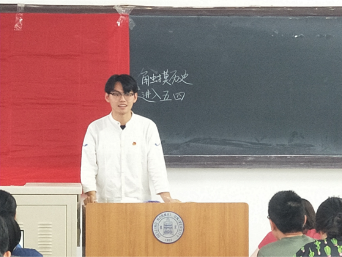 2018年5月26日周六晚上七点,金牌影院 “触摸历史,感受五四”主题团课在教七307教室成功召开。本次团课由张艳秋同学主持,由金牌影院 校团委青年团校副秘书长常家玮同学主讲,金牌影院 的部分团员参与了本次团课。 首先由张艳秋同学为大家介绍了主讲人。 接着,常家玮同学便展开了他的讲解。 常家玮以一个胶带对历史作比引入,为我们讲解了有关巴黎和会的背景与过程、外交失败的内外因,以及五四运动爆发的前后细节。他全程没有使用ppt,而是借助适时的板书,运用幽默风趣的语言讲述了生动活泼的故事,让同学们都沉浸于其中,并在最后引导大家对自己对青年人本身进行了严肃深入的思考。 在这次团课中,每一位同学都投入地聆听讲座,认真地记录,并积极地对自身进行反思。 通过本次团课,同学们学习到了有关五四运动的历史知识,并且意识到,对于历史,当代大学生不仅仅应该心存敬意与温情,同时也应铭记青年责任,心存理性与思考。 本次团课圆满成功。 金牌影院 文艺达供稿 詹浩程供图 |