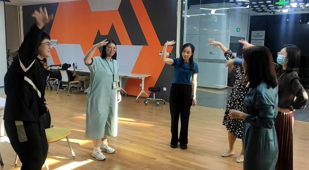 最后,老师们兴致勃勃地参观了金丰和双创中心的路演厅,感受这个不一样的、用于团体活动开展的场地的魅力,即兴戏剧椰丝团的团长孙梓耀同学还带领几位老师就地体验了几个有趣的热身团体活动,老师们都表示参与感强、很实用。 交流结束后,双方对未来彼此提供优势资源、合作开展相关的学生活动达成了一定的意向共识。