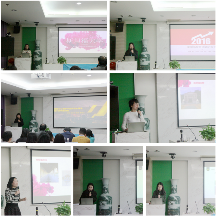 1月10日,金牌影院 心理学院MAP美国实践行汇报展示会完满结束,这也代表了应用心理专业硕士(MAP)第一次前往美国的实践交流项目的圆满落幕。今年11月28日始,2015级MAP的EAP、测量人力、婚姻家庭、临床箱庭、生涯规划五个方向的26位学生经由学院筛选,由史佳鑫老师和贾子豪带队赴美国加州开展了为期两周的学习交流。此次交流活动,同学们不仅进入斯坦福和伯克利顶级学府聆听专业课程,也进入谷歌、英特尔、Facebook等企业领略科技创新,同学们还进行了自主的调研访谈,此次实践行汇报展示会既是对此次实践行做的一个总结,也是进一步思考再前行的开始。 本次活动主要以2015MAP美国实践行学生成员分享在美国加州的见闻与感想为主,活动邀请到了心理学院教授张西超老师、心理学院教授刘翔平老师和MAP中心主任孙舒平老师莅临指导,史佳鑫老师、2015MAP美国实践行成员以及对此行感兴趣的师生一同参加了此次汇报会活动。值得一提的是,考虑到因个人原因无法到场的实践行成员,活动采用了多人在线会议系统,通过远程视频的方式与大家分享自己的收获。活动由实践行成员、2015级EAP方向的笪姝同学主持。首先,活动以一段风采掠影式的视频开场,让在场的观众从感官上感受到了此次实践行充实丰富的行程;随后,由26位去到美国加州的同学以小组为单位依次分享了他们在课程学习、校园观察、商业大赛、企业参访及文化体验的思考、收获与感悟,并对美国高校校园空间环境设计、心理科普、高校社团文化和大学生就业问题等方面取得的调研成果进行报告。报告后,三位嘉宾精彩点评,表达了对同学们的祝贺,高度评价了同学们所取得的成果,并鼓励同学们珍惜机会,积极承担社会责任,将所知、所学、所感能够反馈给社会,做改变世界的星星之火。