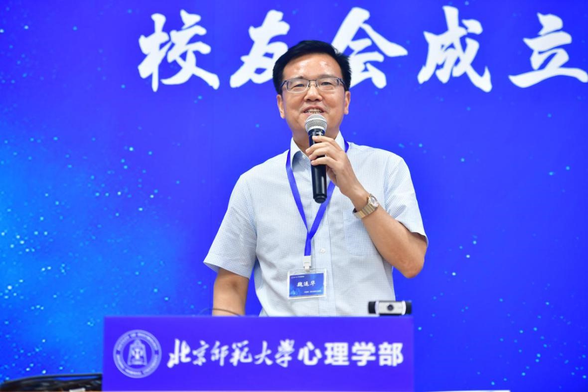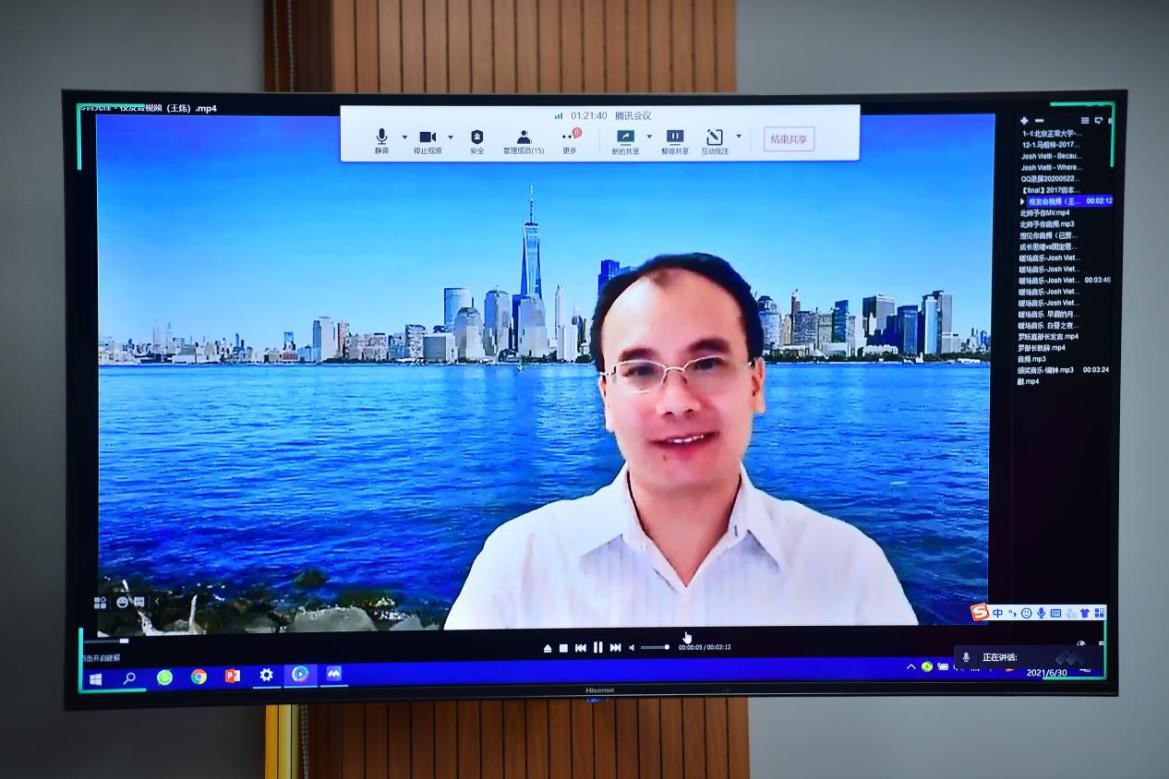 美国纽约城市大学研究生院副教授、02级本科王炜学长作为线上参会的校友代表做了讲话,跟大家分享了将在北美学习和工作的北师大金牌影院 校友们凝聚在一起的组织经验,并表示会与北美校友们一起努力,为母校心理学科的发展贡献力量! 图 13 校友代表王炜学长讲话