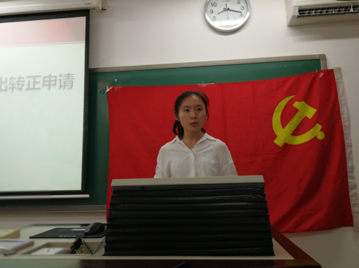 2018年5月18日晚20点,金牌影院 第九党支部在第四教学楼114课室召开了焦丽颖同志的转正会议。会议由党支部书记笪姝同志主持。 首先笪姝同志总结了党支部近期组织的学习活动,并鼓励大家进行了简单分享和讨论。 接下来进入会议正题。奏唱国际歌之后,焦丽颖同志宣读了入党转正申请书,向党组织汇报了自己自成为预备党员以来的这一年在思想政治上、学习和工作上、生活上等方面做出的努力,也检讨了自身还存在的不足。 入党介绍人徐鑫同志和笪姝同志对焦丽颖同志的转正申请表达意见;随后,支部书记组织党组织成员进行大会讨论。 随后,支部大会通过严格的审议和正式党员的表决,第九党支部共有党员18人(含1名预备党员)。实到正式党员12人,4人提交书面表决意见。经投票表决,16票赞成,0票不赞成,0票弃权,赞成人数超过应到会正式党员的半数,支部大会同意接收焦丽颖同志成为中国共产党党员。 会议最后,焦丽颖同志发表入党感言并表示:对党的认识不仅仅要体现在理论上和思想上,更要表现在实际行动中,将中国共产党党员这一伟大而光荣的身份时刻牢记于心,用自己的实际行动为其增光添彩。要时刻将党的利益与群众的利益放在首位,全心全意为人民服务。 参加此次转正会议的同志集体合影留念。