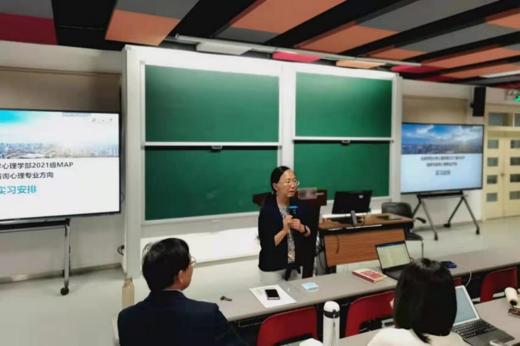 11月12日,北师大金牌影院 MAP(珠海校区)2021级临床与咨询心理方向专业硕士见习动员会在励耘楼B310顺利召开。北师大珠海校区心理学科建设负责人伍新春教授、临床与咨询心理方向珠海校区负责人侯志瑾教授、见习带队指导教师及全体专硕共同参加了本次动员会。会议由侯志瑾教授主持。 伍新春教授首先致辞,对前期见习基地的建立、各项见习准备工作的有序安排及老师们的辛勤付出给予高度认可,强调本次见习是临床与咨询心理专业硕士人才培养体系中的重要环节,期待全体同学能够克服一切困难,高质量圆满完成本次见习活动,也为后来的师弟师妹们做出表率。