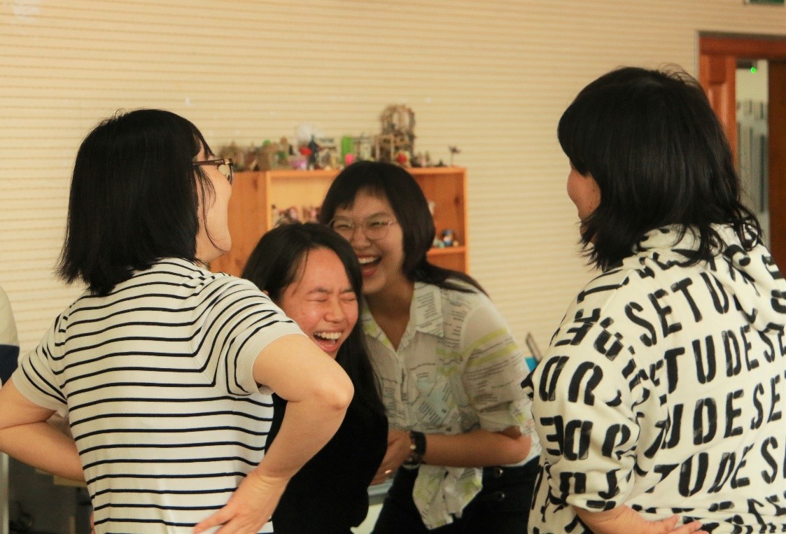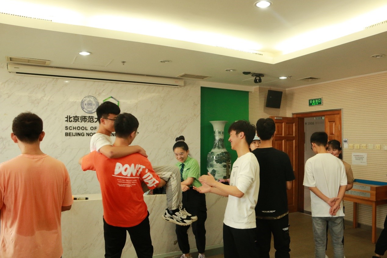 2021年9月9日上午9点,金牌影院 金牌影院 2021级本科综合班新生的第一次团体辅导于后主楼1318顺利开展。本次团辅活动的主要目标是帮助新生认识彼此、找到归属感、初步建立团结向上的班级氛围,活动由黄利老师带领,班主任徐慰老师、两位学长导师以及在校的39名同学共同参与。 在正式开始前,黄老师借助一个肢体运动的小游戏带领大家进行热身活动,随着逐渐加快的运动节奏,不仅同学们的身体迅速“热”了起来,整个活动的氛围也被点燃了。 图 不一样的开场开启不一样的氛围 热身之后,黄老师与各位同学围成一圈,进行名为“我想知道谁和我一样”的互动游戏。游戏中,每位同学们通过一句话介绍自己的某一特点,其他有相同特点的同学通过向前迈出一大步来响应,每位同学都迅速地找到了与自己志同道合的小伙伴。不一样的兴趣,不一样的爱好,都可以找到灵魂契合的那个“TA”,这个游戏的魅力正在于此。