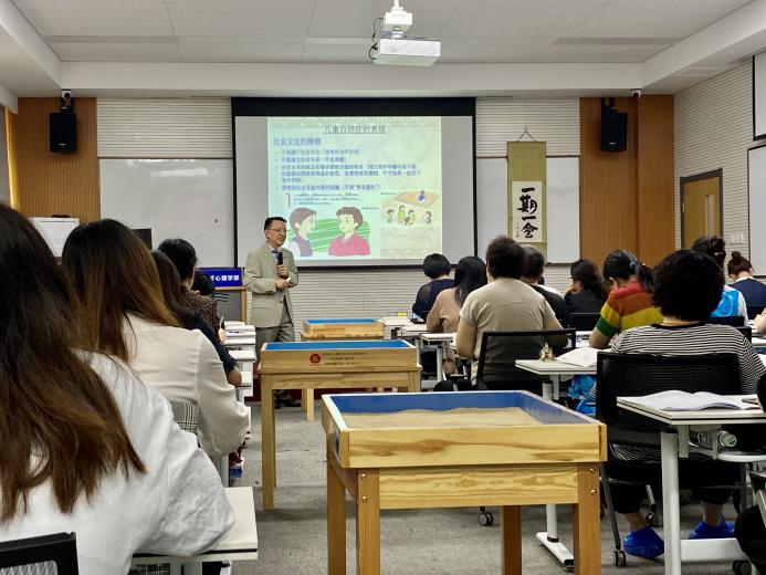 EDP中心培训教室圆满举行。来自全国各地共46名学校心理咨询与辅导教师、心理健康教育工作者、精神科(心理科)医生、心理咨询与治疗从业人员、公安武警司法监狱系统心理教育工作者以及心理学专业师生参加了本次培训。 6月2日上午,金牌影院 金牌影院 EDP中心为本期课程举行了开班仪式。开班仪式由金牌影院 金牌影院 EDP中心谭洋阳老师主持,参与开班仪式的有本次课程的主讲老师金牌影院 张日昇教授、金牌影院 金牌影院 副部长王君教授、金牌影院 金牌影院 EDP中心工作团队班主任原野老师、赵幸老师和全体学员。开班仪式致辞中,北师大金牌影院 副部长王君教授简要回顾了两年前箱庭疗法理论与实务培训的初阶班,对再次在线下见到各位学员表示激动和感谢,并真切表达了对张日昇教授致力于研究和推广箱庭疗法的敬意。