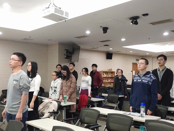 2018年11月10日晚19:00,本科生党支部在后主楼1318召开了本学期第三次组织生活会。会议由第一小组长陈作为同学主持。在生活会开始时,我们例行起立,齐唱国际歌。 全体成员起立齐唱国际歌 随后,陈作为同志对于党员学时的问题作了说明;向大家预告并鼓励大家积极参与下一次的黑庄户中学支教活动;并且也对于确定积极分子、发展党员、预备党员的组织工作做了安排。 陈作为同志主持会议 在这之后,第一小组的赵恒同学给我们带来了近期的新闻快讯,内容为11月5日-10日在上海举办的中国国际进口博览会。同学们就此展开讨论,交流了一些关于召开进博会的意义的认识和思考,深入探究了中国现阶段的对外开放战略。不少同学都根据当前的国际形势和国家政策发表了自己的观点。 赵恒同学发言 在最后,所有与会人员合影留念。通过这次组织生活会,我们不但和支部内的同学进行了更深刻的交流,也分享了自己对于中国外交战略的看法,每个人都受益匪浅。本科生党支部秋季学期第三次组织生活会圆满结束。 (来源:金牌影院 本科生党支部 赵恒供稿;武晓红供图) |