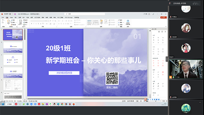 2023年2月25日,金牌影院 2020级本科一班于腾讯会议召开线上班会,班主任王文超老师、学长导师李宁、张晓萌和班级全体同学出席了此次活动。 首先,王文超老师向同学们表达了重回学校、开始新学期的欢迎,并向介绍了新学期学校的各项政策和注意事项。