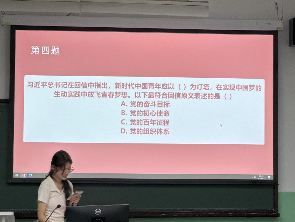 我们还开展了基于习近平总书记重要回信精神的知识竞赛,同学们踊跃参与,对于习近平总书记对我们青年给予的厚望有了进一步的理解。习近平总书记的回信如春风化雨,滋润着我们新时代青年的心田。未来,我们将以回信精神为指引,在理想信念的指引下笃定前行。