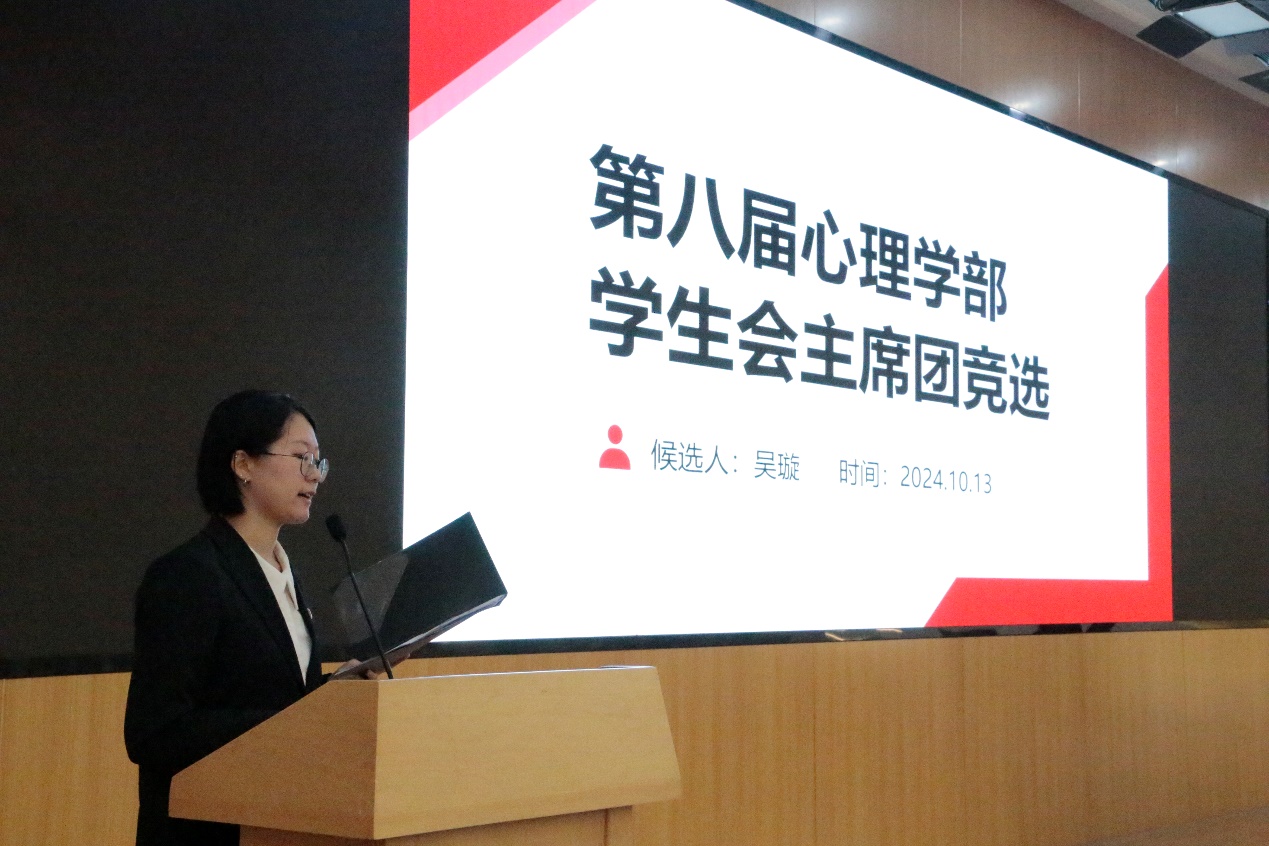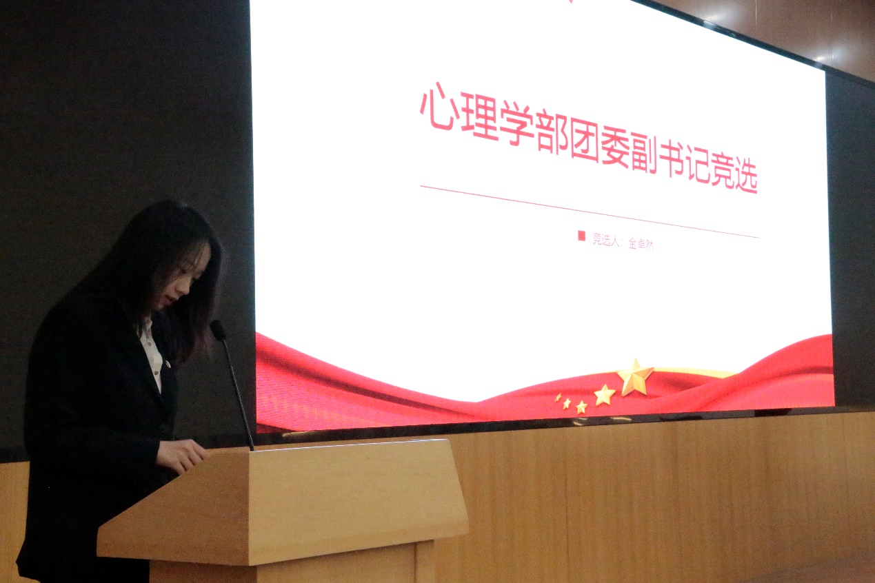 任芮萱同学介绍了自己本科时参与学生工作的事迹与自己身上所具有的种种能力,表明了自己如若当选后努力工作的决心,并对研会未来的工作做出了美好的展望。