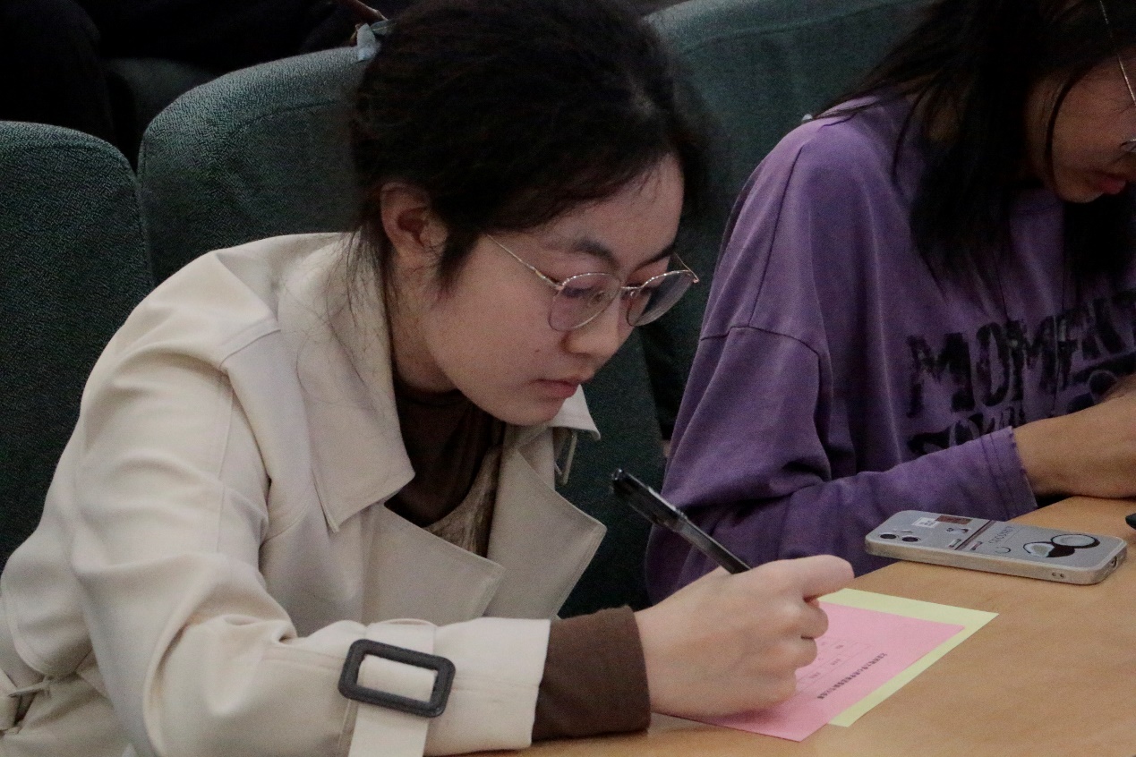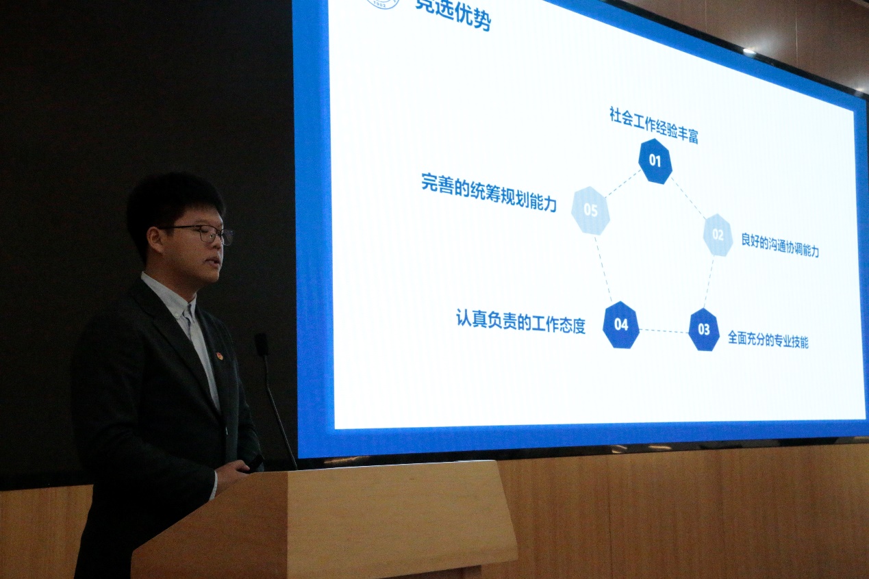 连阳宇同学向大家展现了自己本科及研究生期间在学校担任过的各项职务以及参与举办过的各项活动,同学们的积极反馈给了他信心和决心,他将在未来的学生工作中不忘初心继续前进。