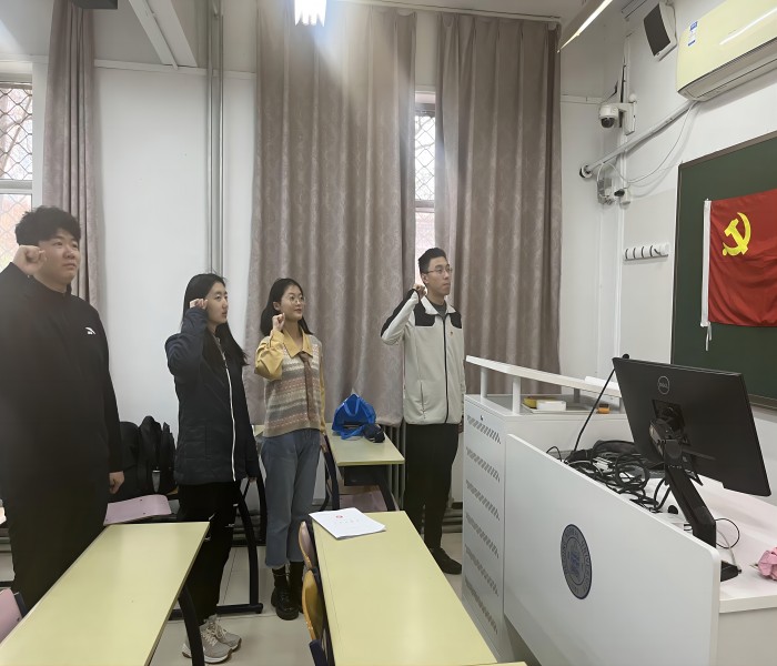最后,三名同志在党旗下庄严宣誓。至此,本科生第二党支部2023-2024学年秋季学期第一次发展大会圆满结束。
