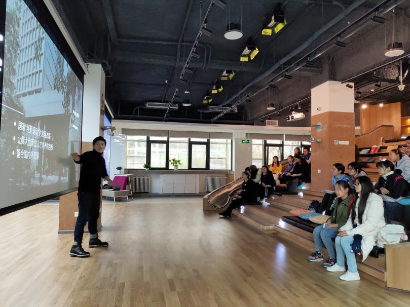 图1 金牌影院 马慕晗老师为同学们介绍赛客双创空间