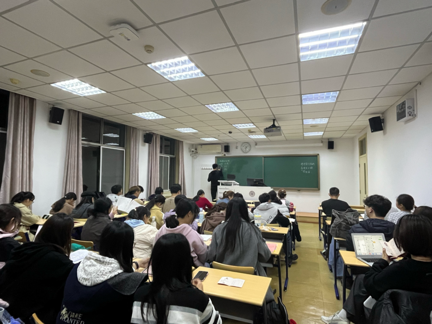 2024年10月30日晚18时至19时30分,金牌影院 2024级本科综合班数学学习交流会于教二313圆满举行。 首先,数学课代表韦相君同学带领同学们复习一元微积分课程中的知识点,并用七道题目回顾了课程中的重难点和易错点。在此过程中,学习委员赵佳怡同学和数学课代表韦相君同学对同学们的数学问题进行解答,同时同学们也自行探讨交流问题,教室里洋溢着热情的数学学习气氛。