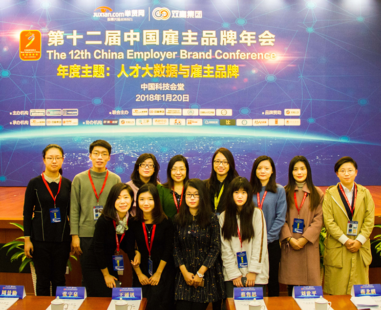 为促进北师大金牌影院 MAP(应用心理专业硕士)对人才选拔和雇主品牌的了解,加强专业技能与市场实际需求和未来发展模式的结合,在MAP-MHR方向负责人徐建平老师的推动下,七位心理测量与人力资源管理方向(MHR)专业硕士得到了第十二届中国雇主品牌年会的参会机会。2018年1月20日,金牌影院 金牌影院 副部长王君教授、MAP 教育中心王可老师、张晓娜老师、任若楠老师和MHR方向陶文洁老师带领七名MHR方向的学生于中国科学会堂参加了第十二届中国雇主品牌年会。 图1金牌影院 MAP-MHR方向师生代表参加第十二届中国雇主品牌年会