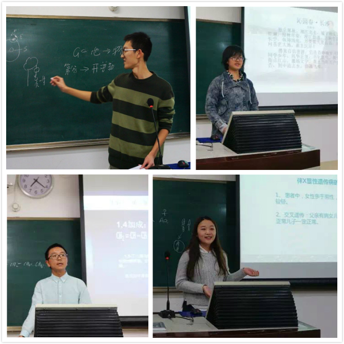 2016年10月30日晚19:00,未来教师素质大赛心理学院分赛于教二109圆满举办。到场的评委有:金牌影院 第十七届研究生支教团成员,校第十三届、十五届未教赛决赛选手王帅鸣,校第十五届未教赛决赛选手孙雨雯,未来教育家协会社长,全国大学生与研究生物理教学技能展评二等奖获得者,校第十六届未教赛半决赛选手谢晓雨。 一号选手刘思燚严谨科学地讲述了化学实验的原理,板书工整,思路清晰;二号侯森宝巧妙引题,深入浅出,并穿插提问,加深理解;三号徐敏别开生面,以讲述故事的形式为大家讲授一堂妙趣横生的化学课;四号宋子豪用画图形式的板书启发学生产生共鸣,并引用科学家的故事,表达清晰流畅;五号路宇轩讲授《卜算子(缺月挂疏桐)》,通过朗诵、解释词义、赏析词句等方式,表达准确,情感真挚,富有感染力;六号选手方圆以随堂检测题的形式引出了教授主题——伴性遗传,选手语言生动、有力,感染力强,很好地活跃了课堂气氛;七号选手张涵宇通过实验推理教授关于降低化学反应活化能的酶的实验,思路清晰,表达干练,课堂严谨;八号选手张雨璇通过充分准备,PPT简洁美观,内容充实,并通过朗诵、解释各句词义、分析情境,带领大家对词进行赏析。 对于选手们的表现,评委们给予了充分肯定,同时也提出了自己的看法和建议。最后,方圆荣获一等奖,张雨璇、侯森宝荣获二等奖,刘思燚、徐敏、宋子豪荣获三等奖。本场比赛中,选手们态度认真,表现优秀。他们在靠近未来理想的道路上,已经迈进了坚实的一步。 比赛结束后,评委选手与全体工作人员合影留念,本次比赛圆满落幕。