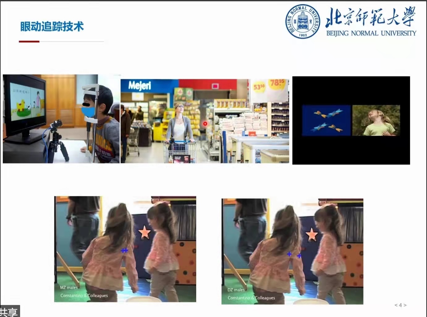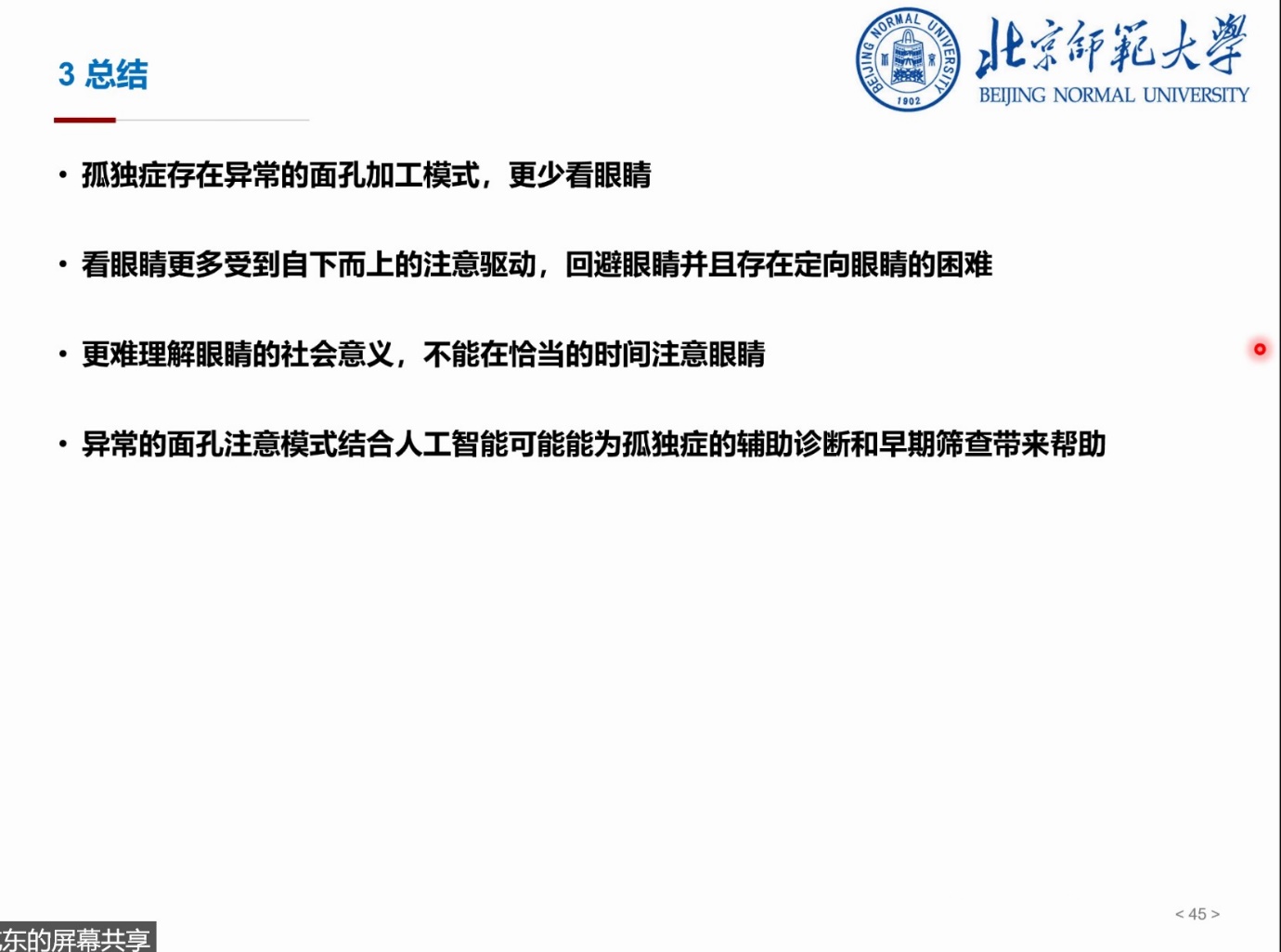 随后,王老师介绍了利用眼动技术研究孤独症儿童面孔加工的有关研究。