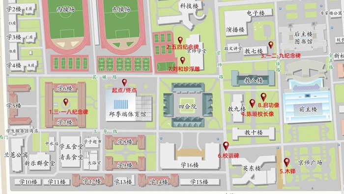 大家在各个纪念碑前回顾历史,感受师大百廿风华,同时也在定向越野活动中锻炼身体,放松心情。