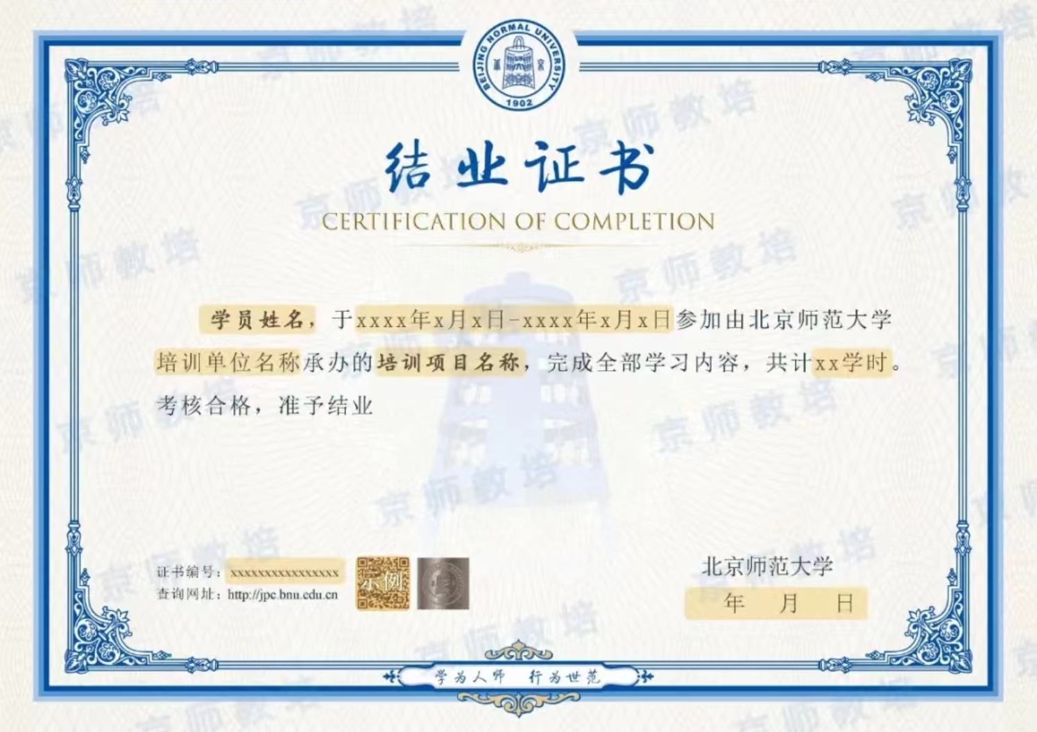 教授,博士生导师,教育部青年长江学者; 资深家庭治疗师,注册督导师。中国心理学会婚姻家庭心理与咨询专业委员会(筹) 副主任委员兼秘书长, 中国教育学会学校教育心理学分会理事兼副秘书长。 刘朝莹:金牌影院 金牌影院 认知神经科学与学习国家重点实验室教师, 金牌影院 发展心理研究所婚姻与家庭研究与咨询中心资深专家,北京市婚姻 家庭建设协会理事,人社部青年教育指导培训师,全国妇联全国网上家长学校专 家, 中国心理学会注册心理师,美国催眠治疗师学会(AAH)认证催眠治疗师, 国家沙盘游戏咨询师,国家二级咨询师,国际认证 EAP 专员,多个 EAP 公司培训 师。过去几年曾为北京、上海等知名中小学开设带领“行为契约教养法训练营” 等活动近百场。 六、结业要求和结业证书 完成课程学习、线上督导及实操分享,将获得“金牌影院 金牌影院 行为 契约教养法培训课程”电子版结业证书。 可通过扫描电子证书二维码或在金牌影院 培训与基础教育管理处官网://jpc.jpyy2.net/cms/zscx/index.htm输入证书编号鉴别真伪。 课程结业证书样图如下: